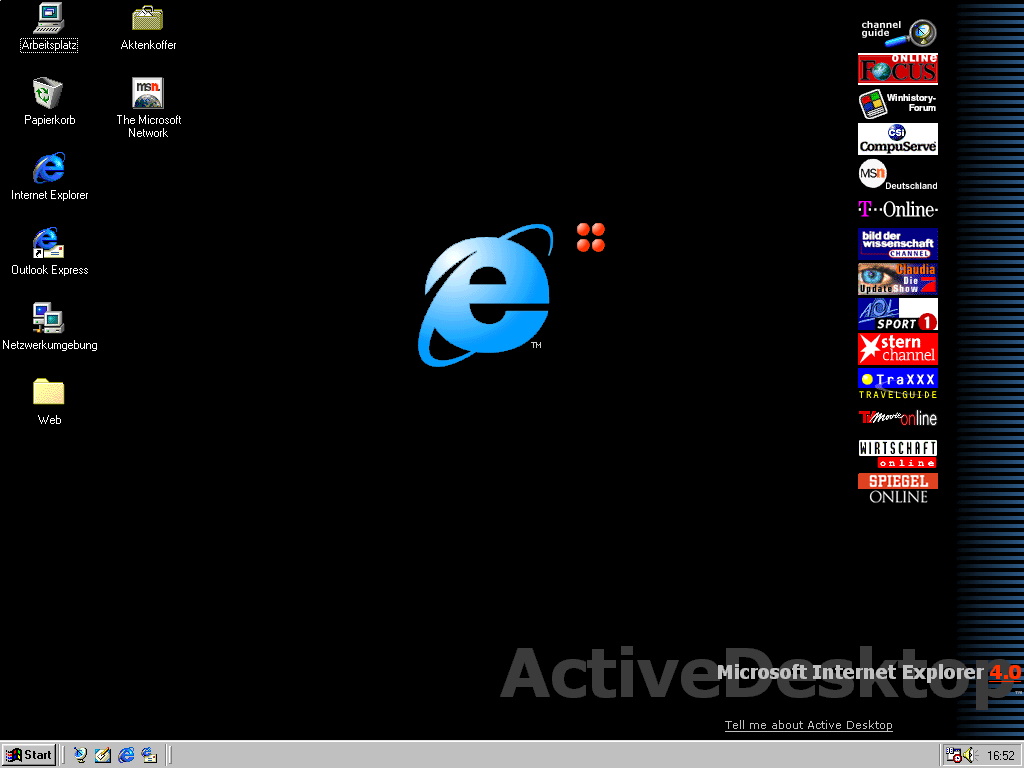 • Deutschsprachiges Windows 95 mitsamt IE 4.0 SP2 und dem Active Desktop von der IE Preview 2.