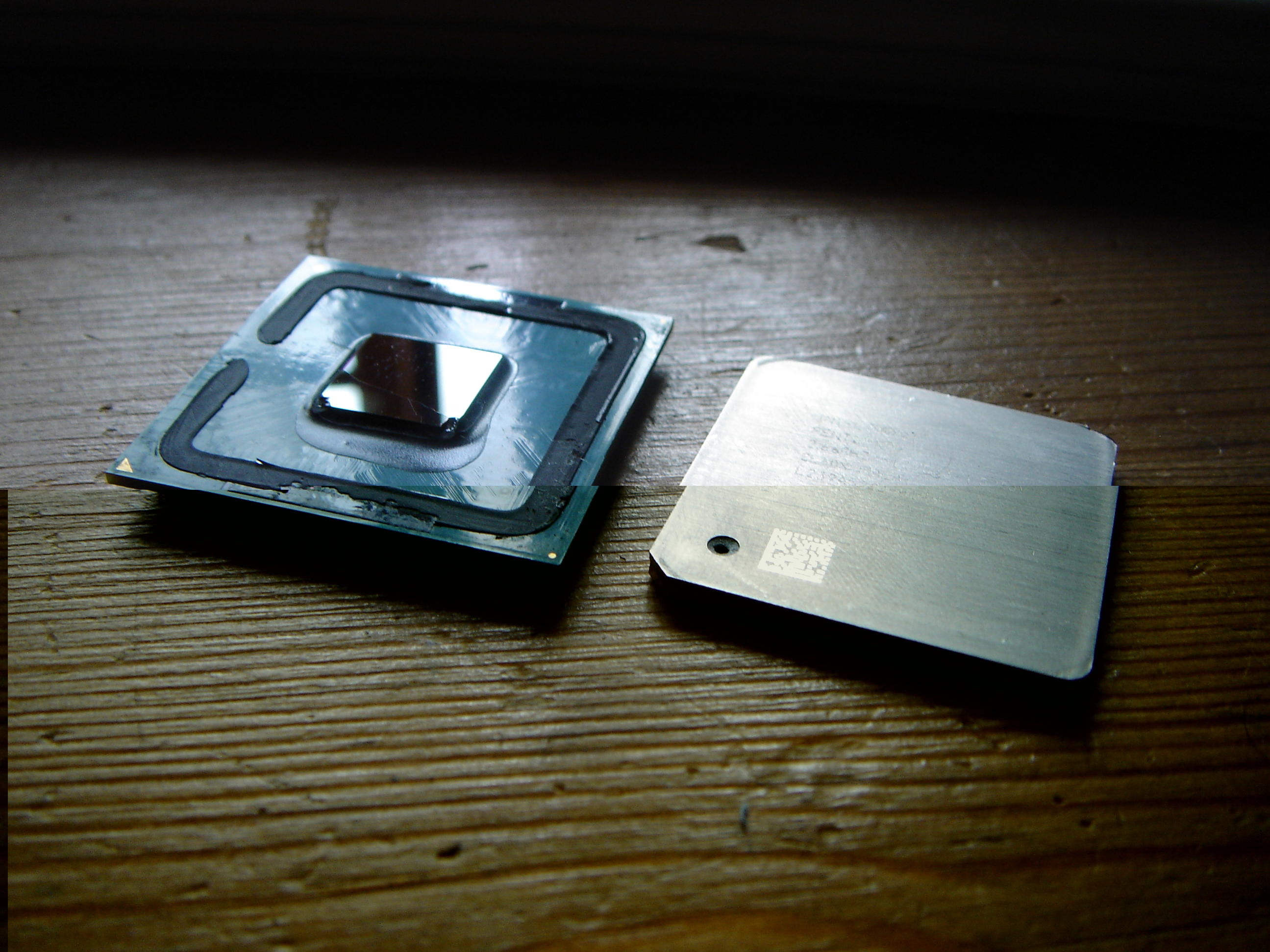 War in nem Medion pc verbaut, und wieder ein argument, kauft NIE fertig PCs die Wärmeleitpaste war wieder so beschissen wie dort bei meinem 1,8 ghz p4 ausm Futjitsu rechner, wilst den kühler abnemen, hebt sich der ganze prozessor mit raus und klebt am Kühler, son shidd, mein dad hat dan n Cutter genommen und wollte ihn wegschneiden vom Kühler, nur hat er dabei leider die Silikonkanter erwischt die den Heatspreader aufm Die hält, als es dan merk¨ürdig geknackst hat wussten wir, das war falsch, (bez hätt ichs gesehen hättichs natürlich sofort gesagt) ...... nuja RIP PENTIUM 4 2,66 Ghz
