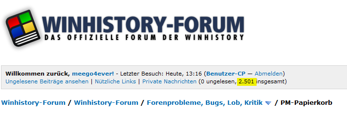 Zumal ich selbst noch nie ne PN gelöscht habe, wozu auch? Ist doch genug Speicher vorhanden.