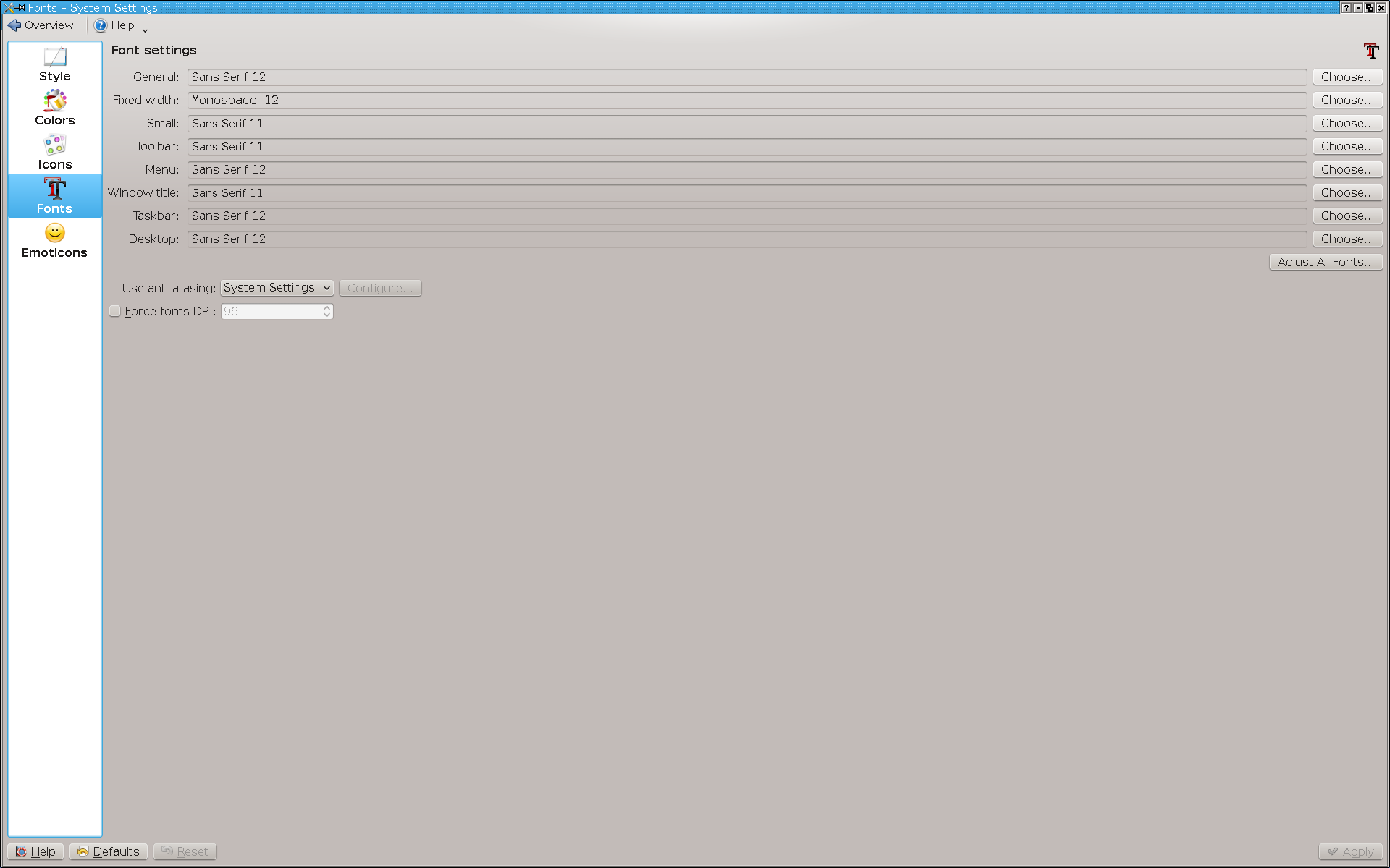 Bei KDE 4 ist das Ändern nur der Schriftgrößen hingegen kein Problem.