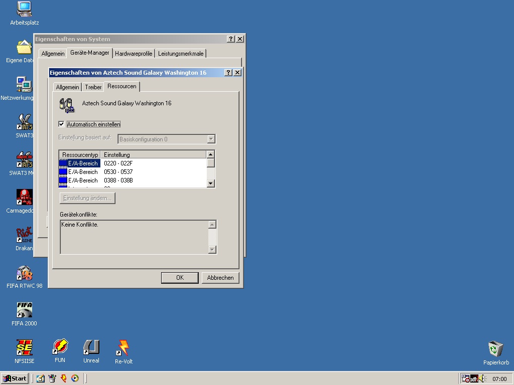 • I/O-Adressbereich: 0x0220-0x022F ("SoundBlaster", also der Soundchip an sich)
