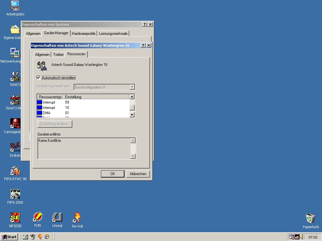 und wie erkenne ich ob IRQ und DMA doppelt belegt sind? wie gesagt ich kenne mich mit soundkarten eher nicht so aus was das alles angeht.