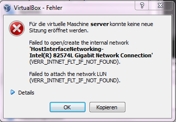 Habe ne komplett neue Virtuelle Maschine erstellt, da kommt der gleiche fehler ![]()
