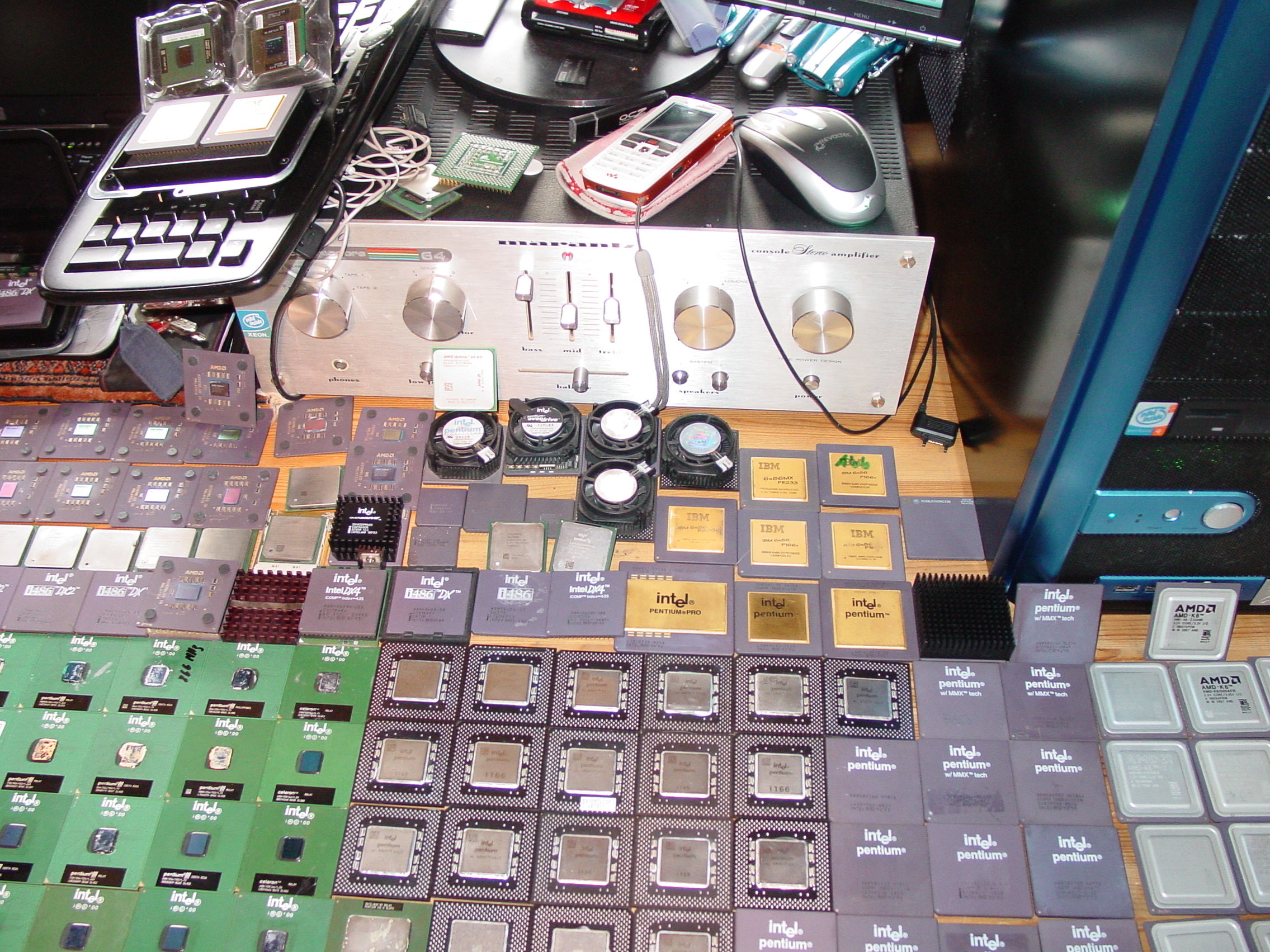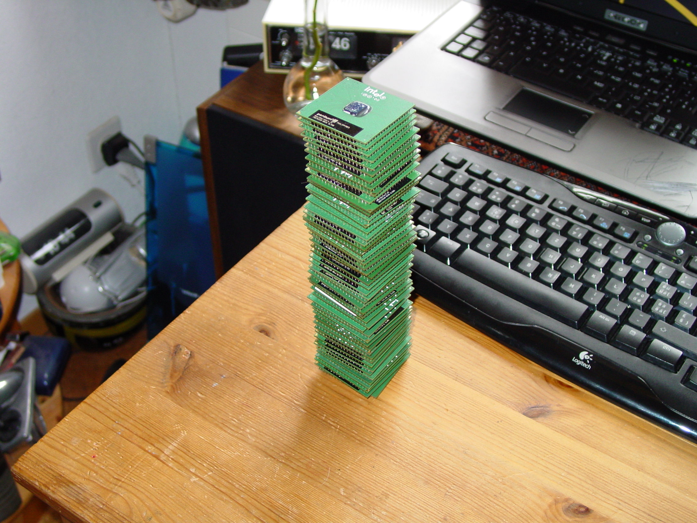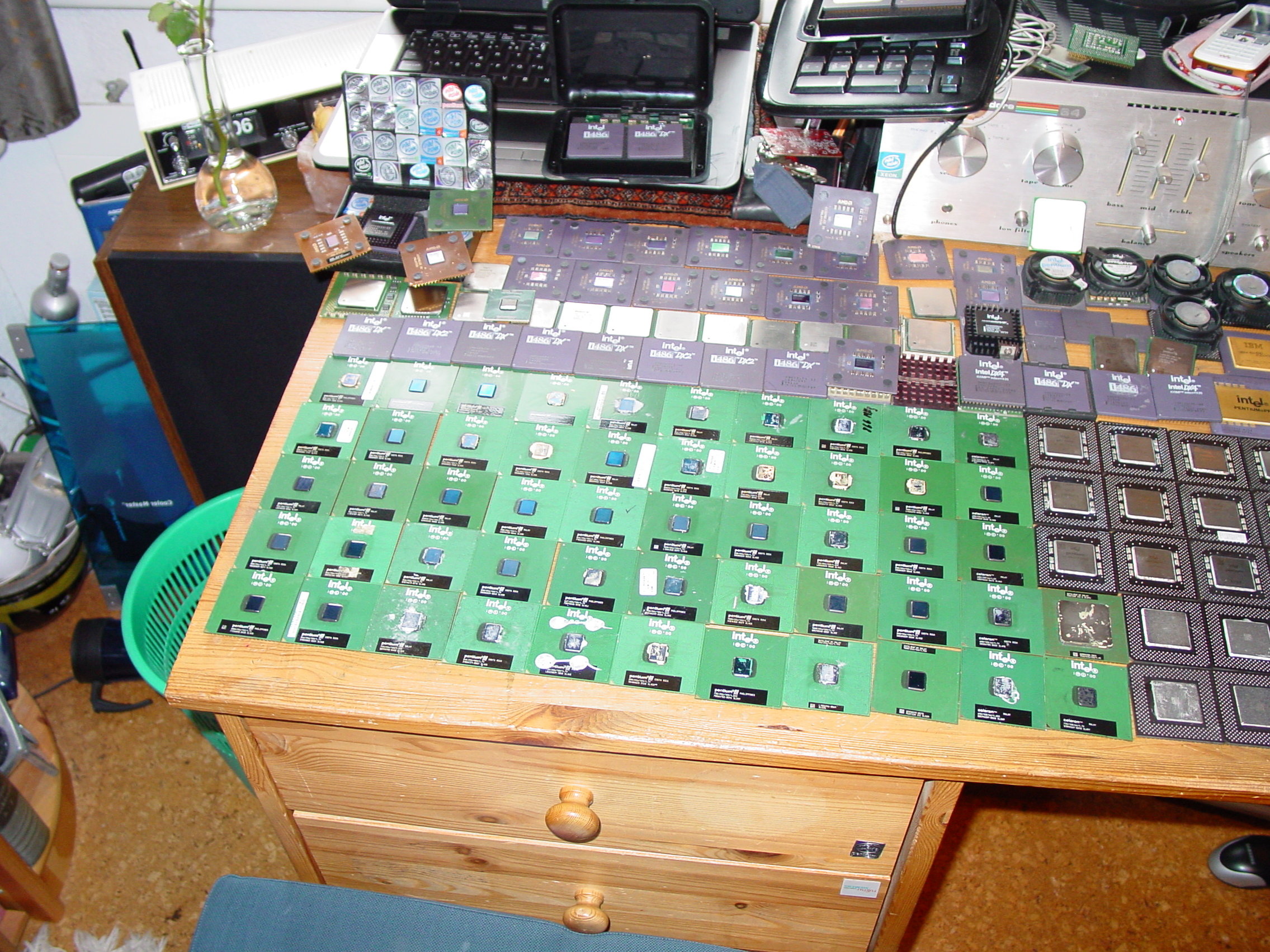 So 90 % meiner herumliegenden CPUs. Fehlen tut ein P4 der auf nen Board ist, und so ungefähr 3-5 Slot 1 Prozessoren die zumeist immer keller bei den boards liegen.