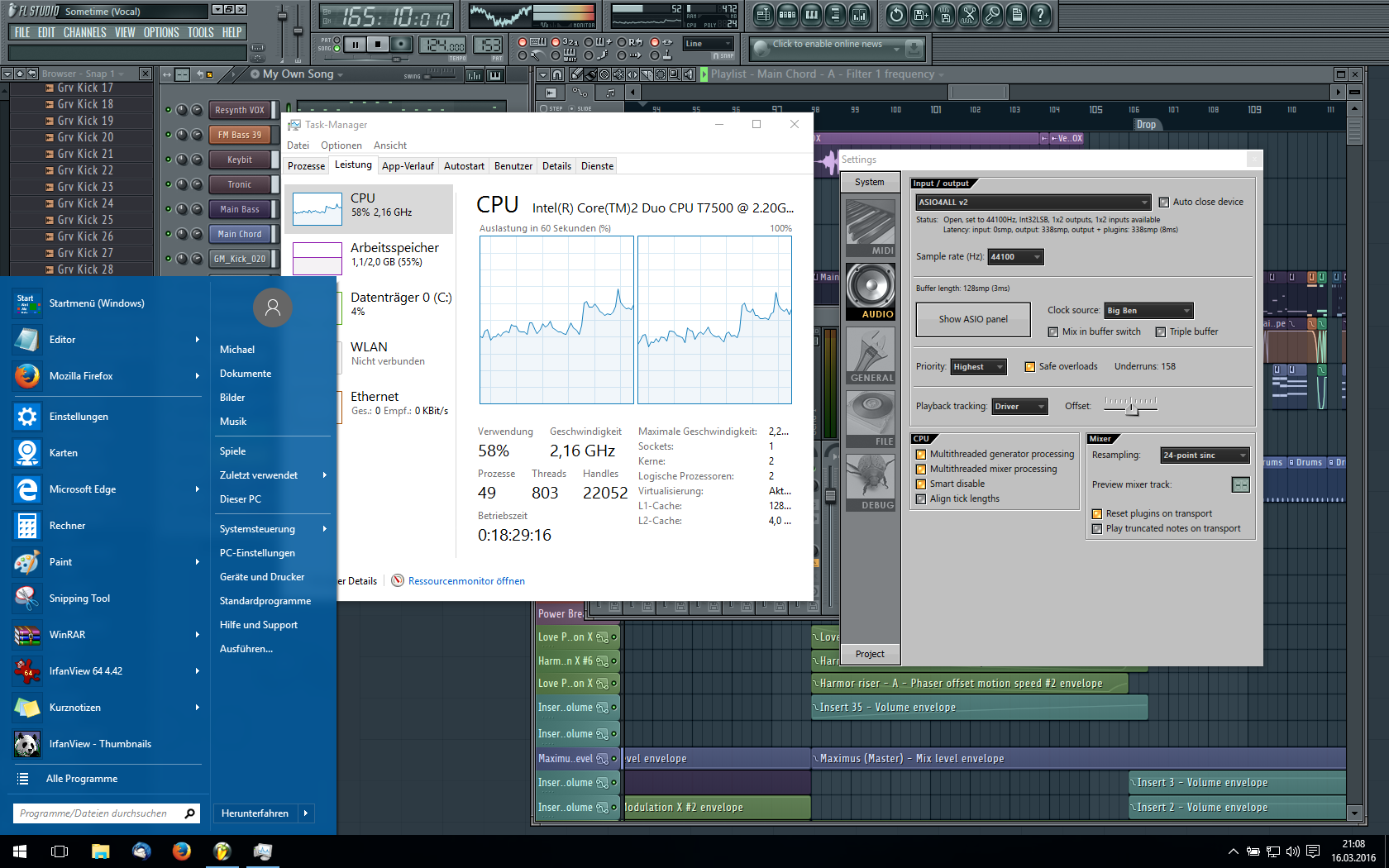 • Also mit FL Studio 11.1 64bit merke ich noch keinen großen Performance Schub, das kam aber glaub ich schon zu Windows 8 oder 8.1 Zeiten raus oder?