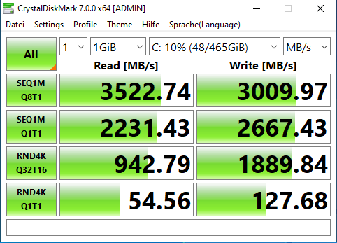 So, heute mal den PC wieder auf seine NVMe SSD mit Windows 10 drauf zurückgebaut. Mit den Ryzenproblemen atm. werd ich mit dem Win11 Update noch ein bisschen warten. Was aber beim AS SSD Benchmark interessant war: intern als Systemdatenträger hatte die Kingston A400 ganz andere Benchmarkergebnisse wie extern im USB 3 Adapter..