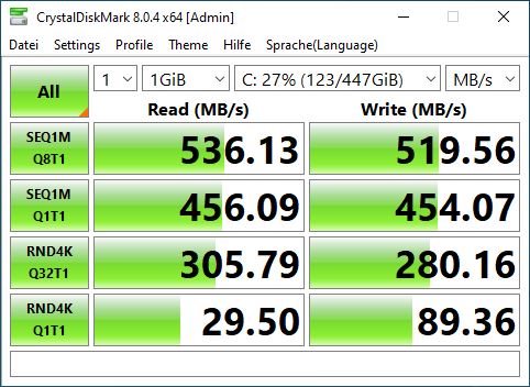 kommt halt auf den SATA Controller und die CPU an aber 500 MB/s sind durchaus OK
