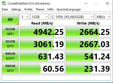 Edit: Heute waren es 2,6 - 2,9 GB/s, ich hatte das noch mal mit jemandem mit 1 TB Storage verglichen. Weird. Wahrscheinlich Stromspargedönse.