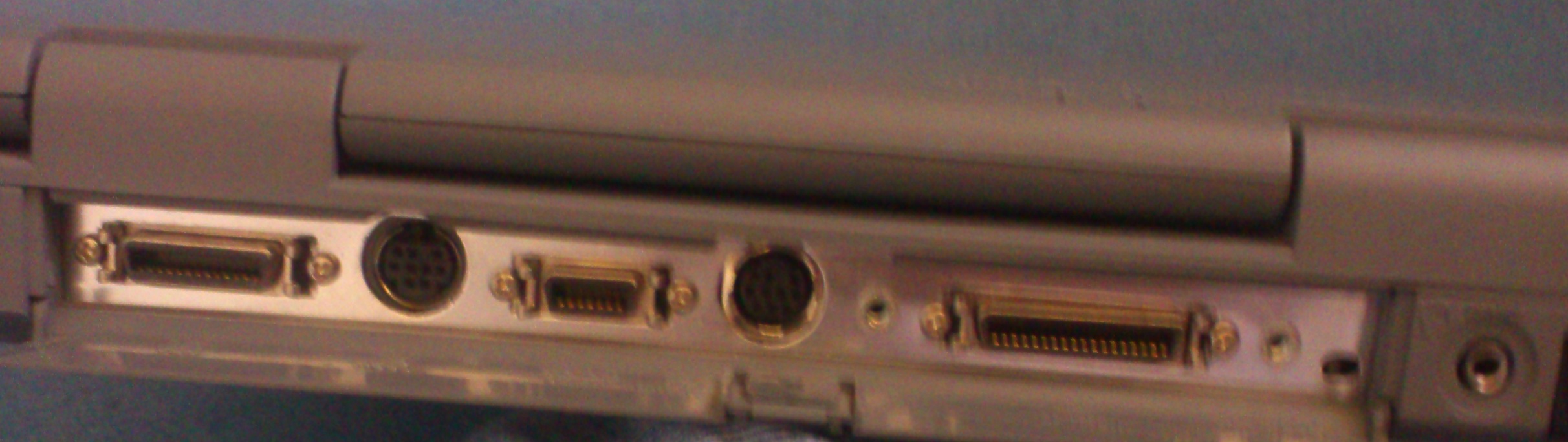 An Anschlüssen stehen neben dem Netzeingang solche für das Diskettenlaufwerk, eine Maus, seriell, parallel und ein "Analog RGB"-Ausgang zur Verfügung, dabei handelt es sich aber nicht um PC-kompatible Anschlüsse.