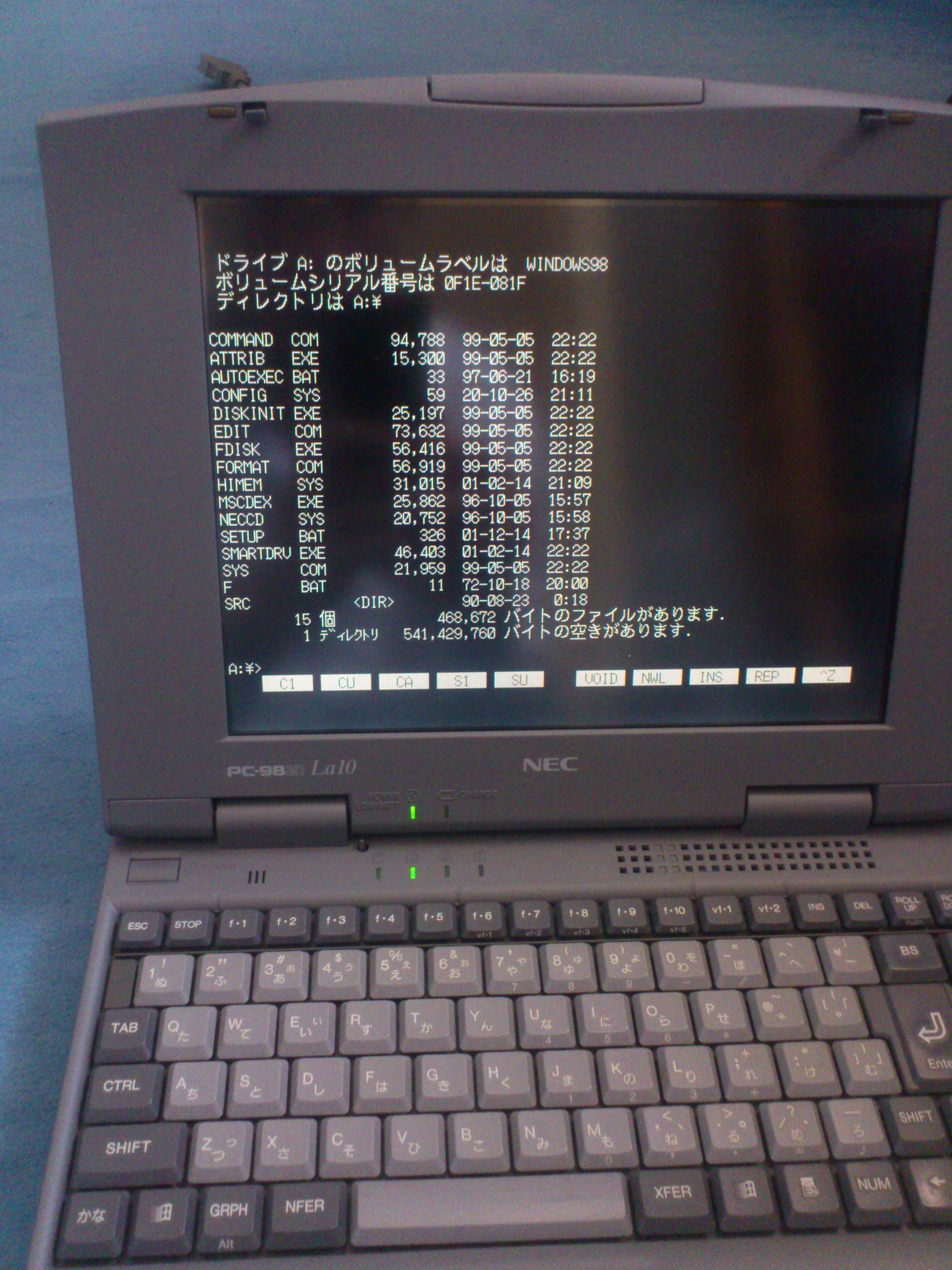 Das Gerät bootet von der Festplatte in ein japanisches DOS 7.1. Weitere Funktionstests habe ich nicht durchgeführt. Es sollte klar sein, dass auf dem Gerät ausschließlich die japanischen PC98-Versionen von MS-DOS und Windows laufen. (Wie es mit BSD oder Linux aussieht, weiß ich nicht.)