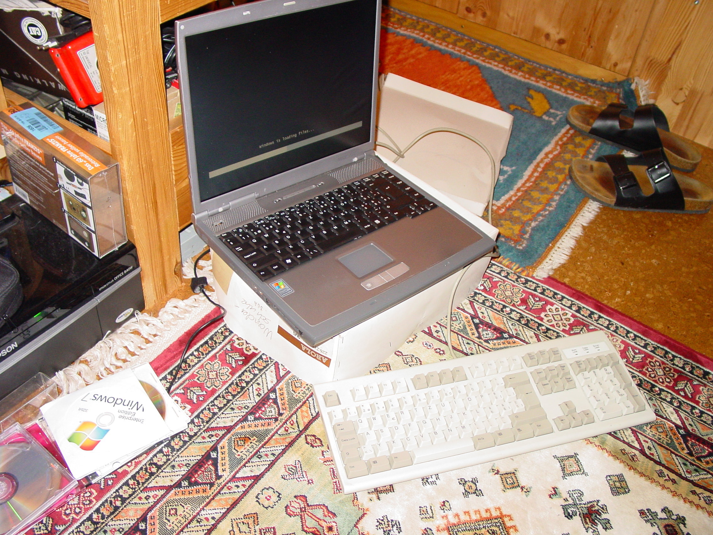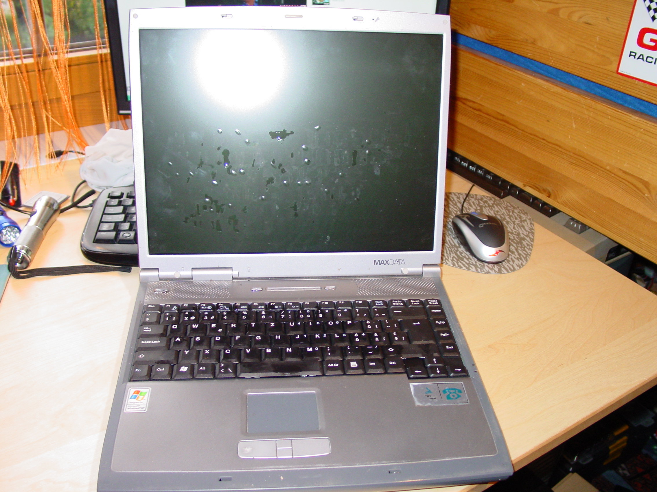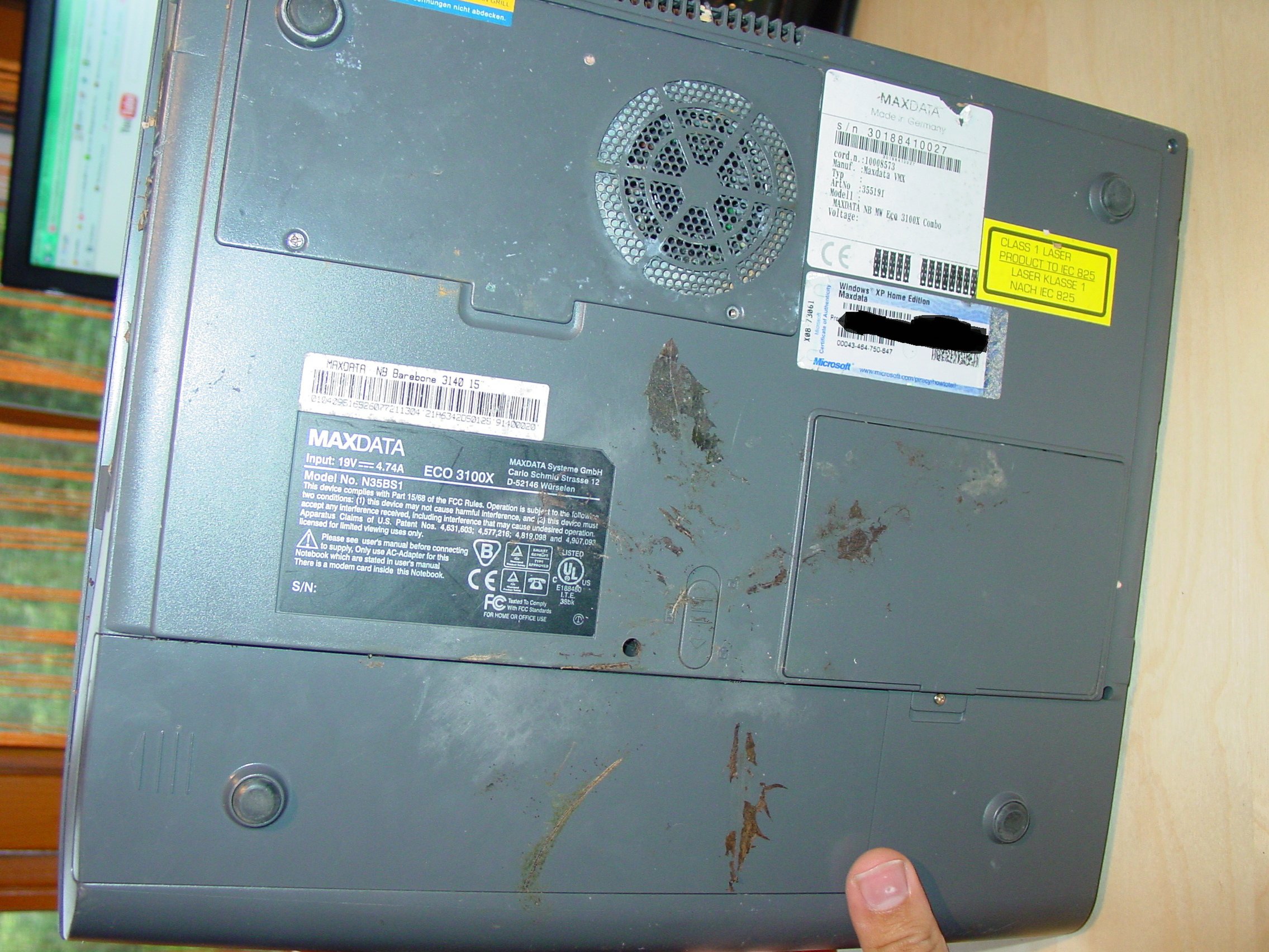 n Maxdata? Pentium 4 Notebook mit so wies aussieht Wasserschaden, is nass und die Anschlüsse sind rostig, Bilder gibts sobald meine Mum nach Hause kommt, bei ihr in der Praxis hab ichs deponiert, da ichs nich gut aufm Mofa nach Haus nehmen konnte