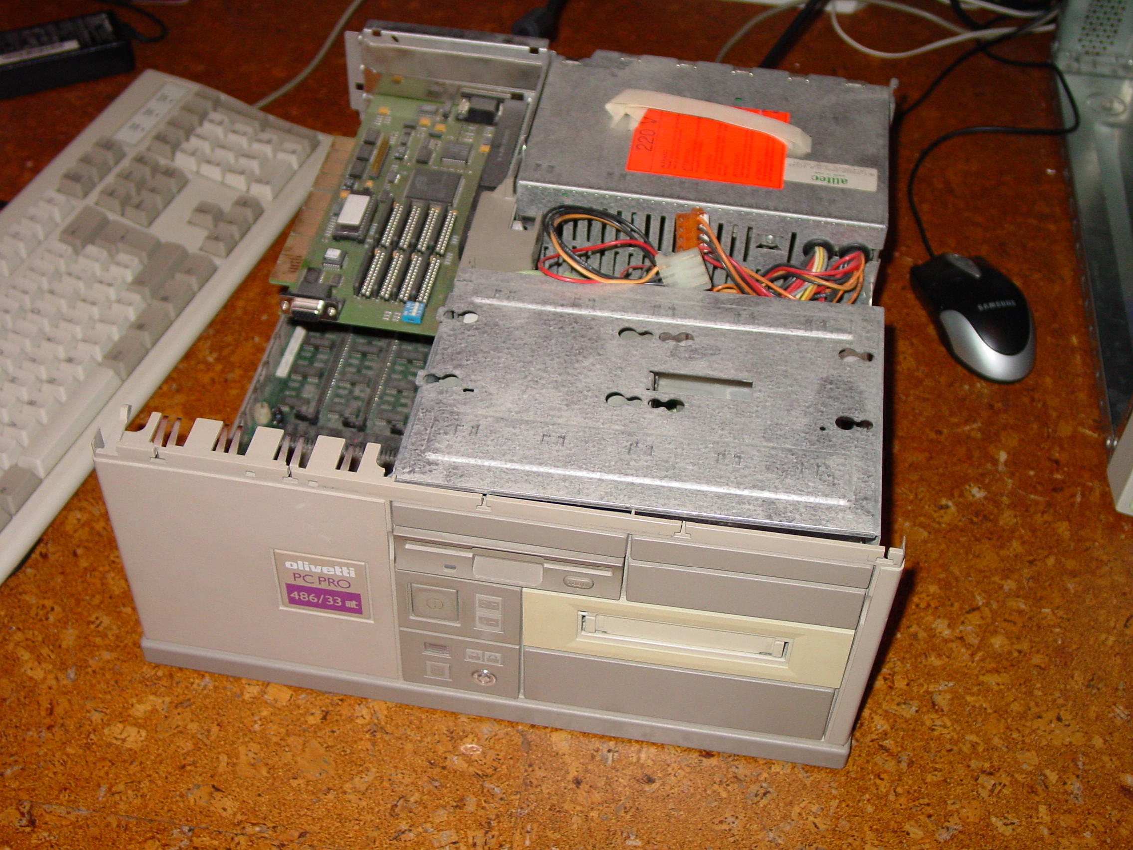 Hab jetz das Case mit sammt dem meisten innenzeugs wieder raufgebracht, den 33MHz Intel habich behalten so wie die 66ns Simm ram mit je 1Mb die Maxtor HDD von 1997 sowie die Graka, die hat 2 Anschlüsse also für ISA und EISA(glaubich) und auf beiden seiten n Monitoranschluss, is ne ElsaXHR Winner 1000 mit 1MB ram