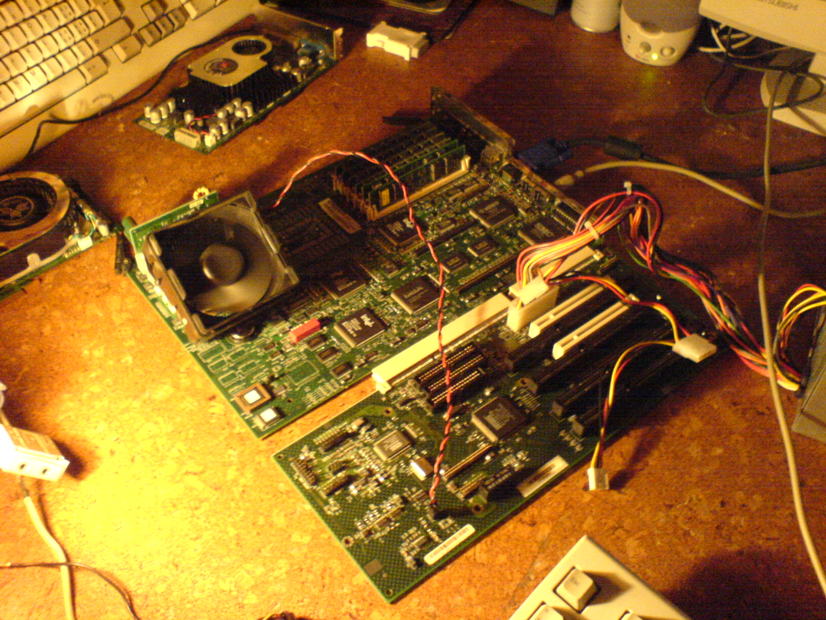 Ich habe heute einen Pentium 4 1,5 Ghz (Sockel 423) mit Asus P4T Board, Kühler und ingesamt 384 MB RAMBUS RAM bei einem Computerhändler abgesahnt