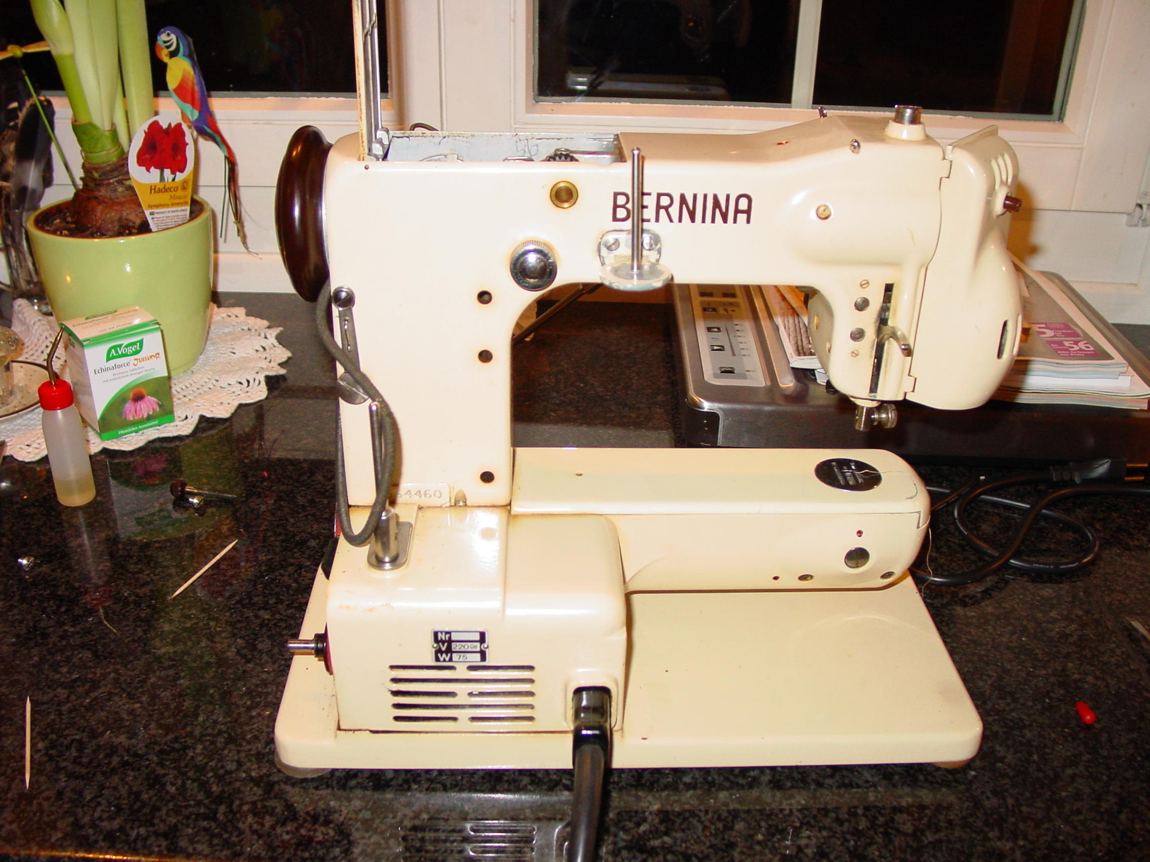 Euda hab ne funzende BErnina 125 Nähmaschine mit original GArantieschein vom 23.1 1953 grunden im Originalkoffer, die maschine selbst is ziemlich verhockt, der motor hat haber nach ein wenig él wieder gedreht, anfangs nur stotternd und dann hjabich ihn ma richtig geheizt, jetz dreht er sauber hoch. Hab sowas von derbe Freude