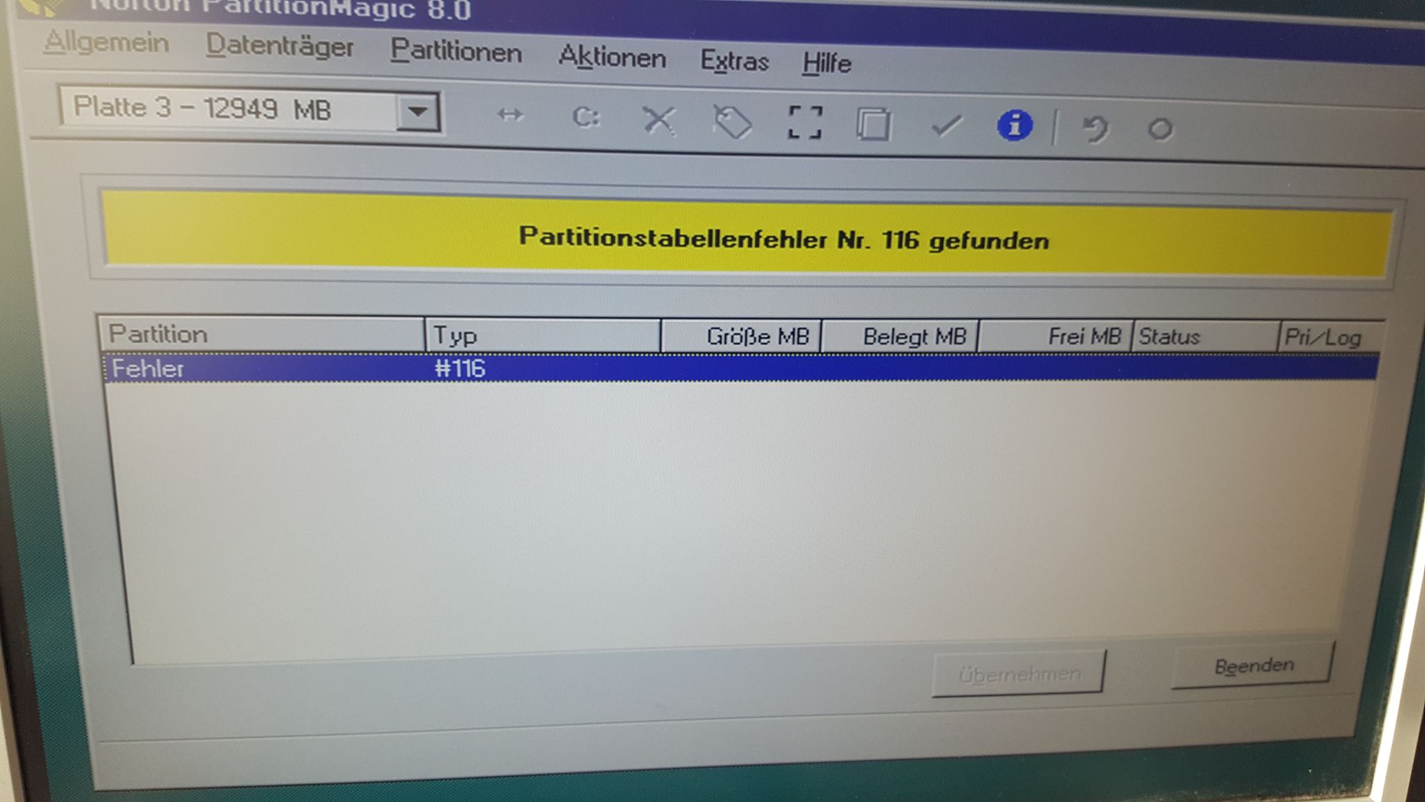 wenn ich es löschen will kommt dann kurz bevor partition magic einen neustart verlangt diese meldung hier:Mann mann. fdisk /mbr mit Leerzeichen