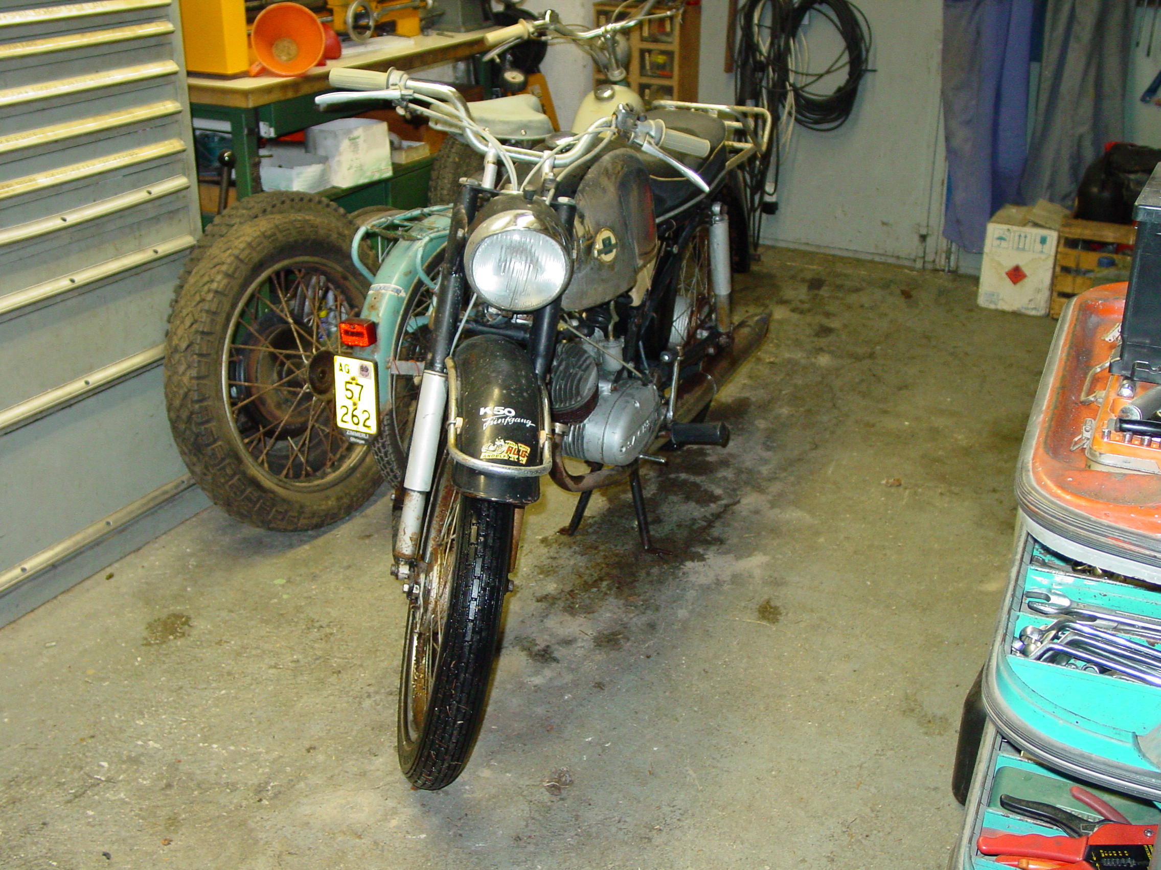 Ne wegen bekanntem Problem von zu wenig Sprit, hab ihn jetz mit dem Hochdruckreiniger gewaschen, nun wird er auf Hochglanz gebracht und der Vergaser wird auch sauber gemacht, achja die Felgen zind ziemlich im Arsch, sehr rostig, mal schauen was sich machen lässt.
