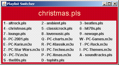 • So für meinen neuen WohnzimmerPC hab ich mir nen Programm gebaut wo ich zwischen verschiedenen Playlisten hin und herschalten kann.