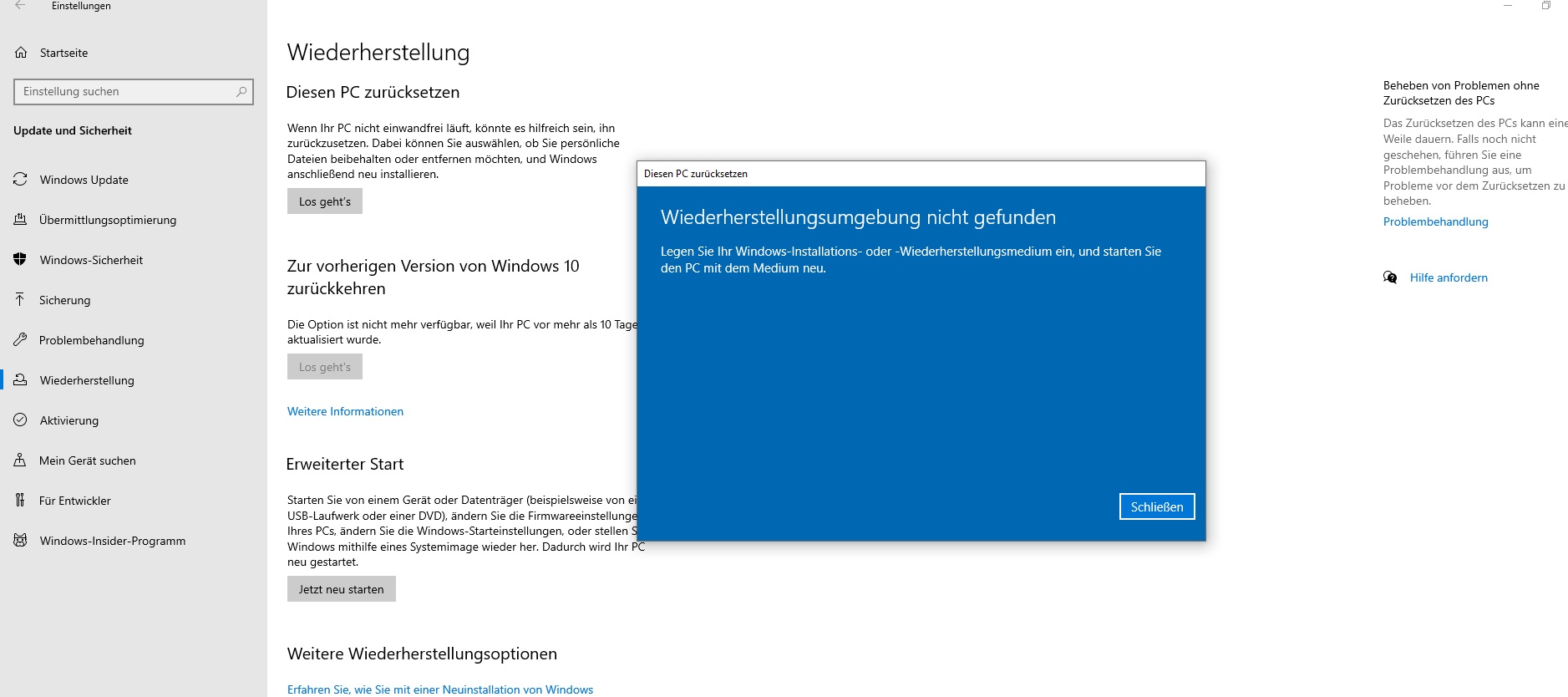 bzw. wenn ich auf das mit problembehandlung gehe, komme ich in ein anderes untermenü was im 1. screen dargestellt ist.