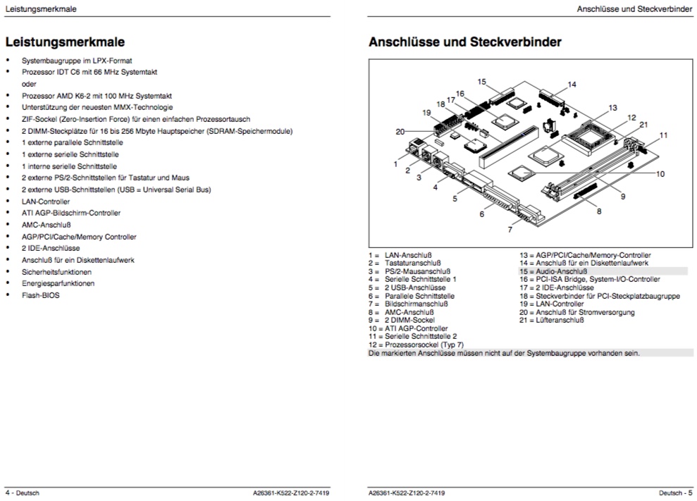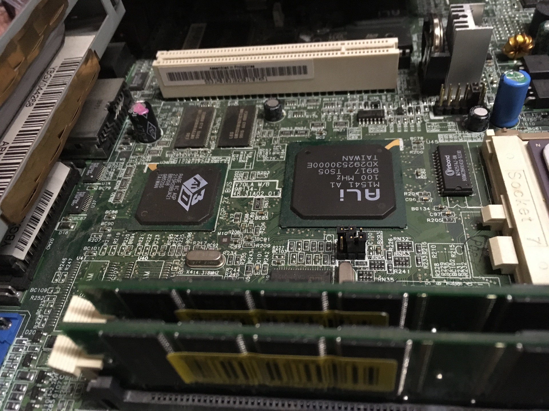 Ich habe hier einen mit K6-2/450 als Ausführung Scovery-211. Hat 2x128MB AtiRage2c und leider keinen SoundOnboard. Dafür gibt es nur zweimal PCI, also nix mit ISA-Soundblaster. In dem einen PCI-Slot steckt die ESS-Solo1 mit Midi-Modul Huckepack, in dem anderen steckt eine NEC PowerVR PCX1.