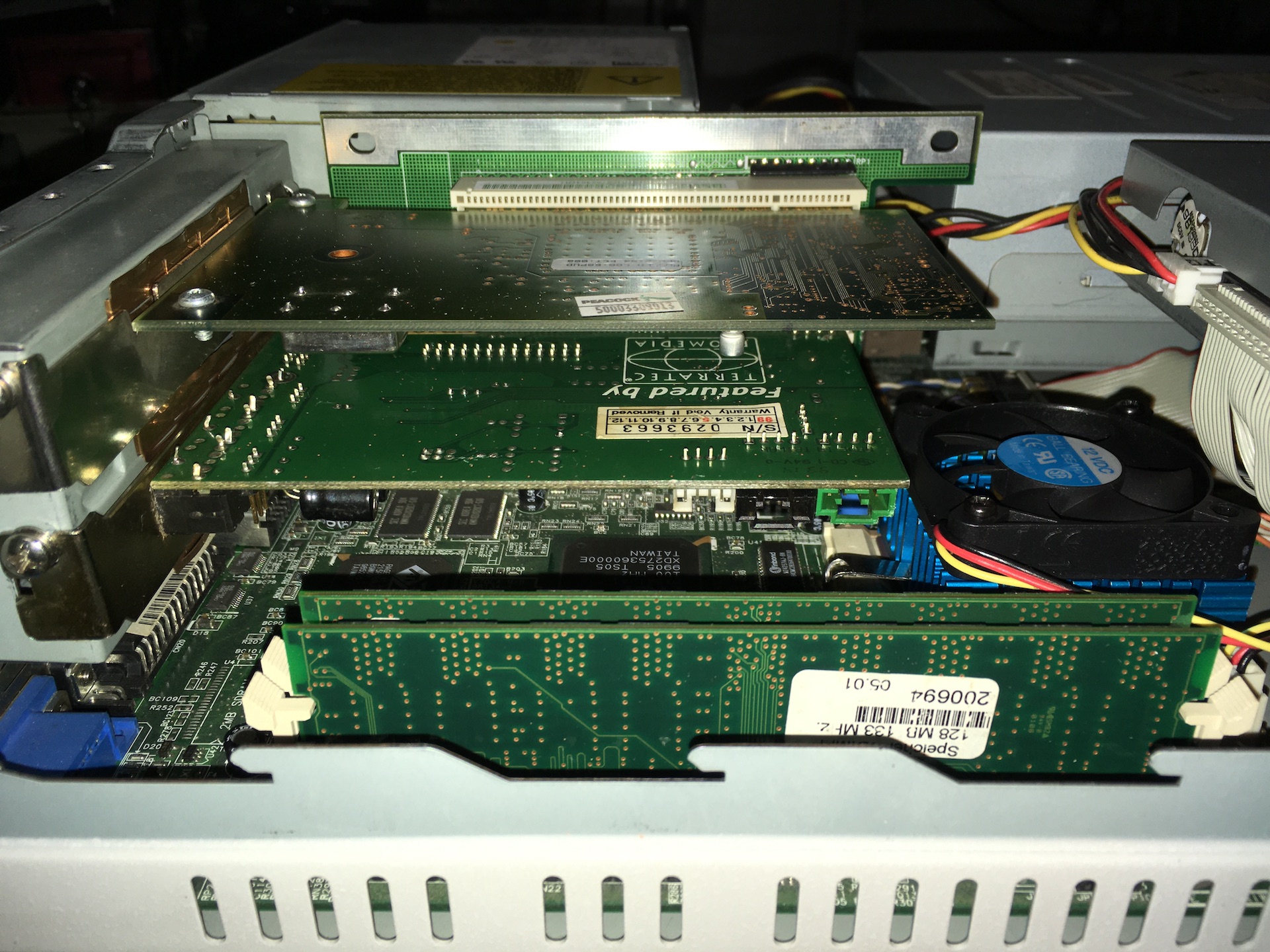 - 5,25" Floppy. In diesem Fall hätte ich ggf. die PCX1 rausgehauen und eine SCSI-PCI reingehauen und ein externes SCSI angeschlossen.