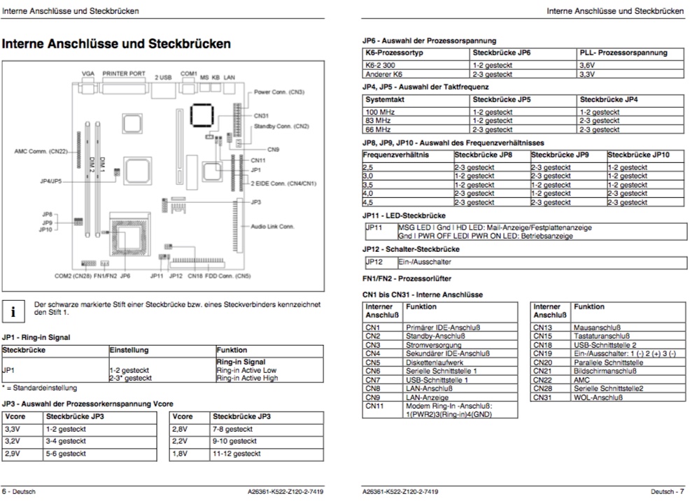 Ach ja, bei meiner Scovery 260 musste mal das Netzteil getauscht werden. Etwa 'n Jahr später verabschiedete sich das Brett in der Scovery und sie wurde ausgeschlachtet. Das Netzteil, ein AcBel API-6117L, liegt hier seit dem ungenutzt rum. Falls Du Interesse dran hast …