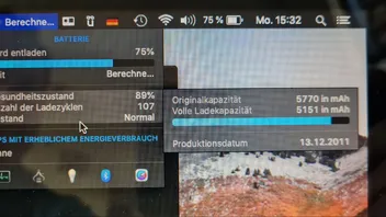 - Akku hat noch 89% Ladekapazität und nur 107 Ladezyklen