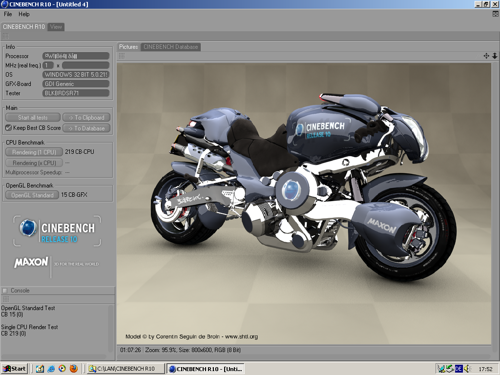 | Sje | 9328 | 17675 | 4384 | Intel(R) Core(TM) i7 CPU 940 @ 2.93GHz | 4 Cores, 8 Threads @ 2,93 GHz | AMD Radeon HD 6850 | Link |