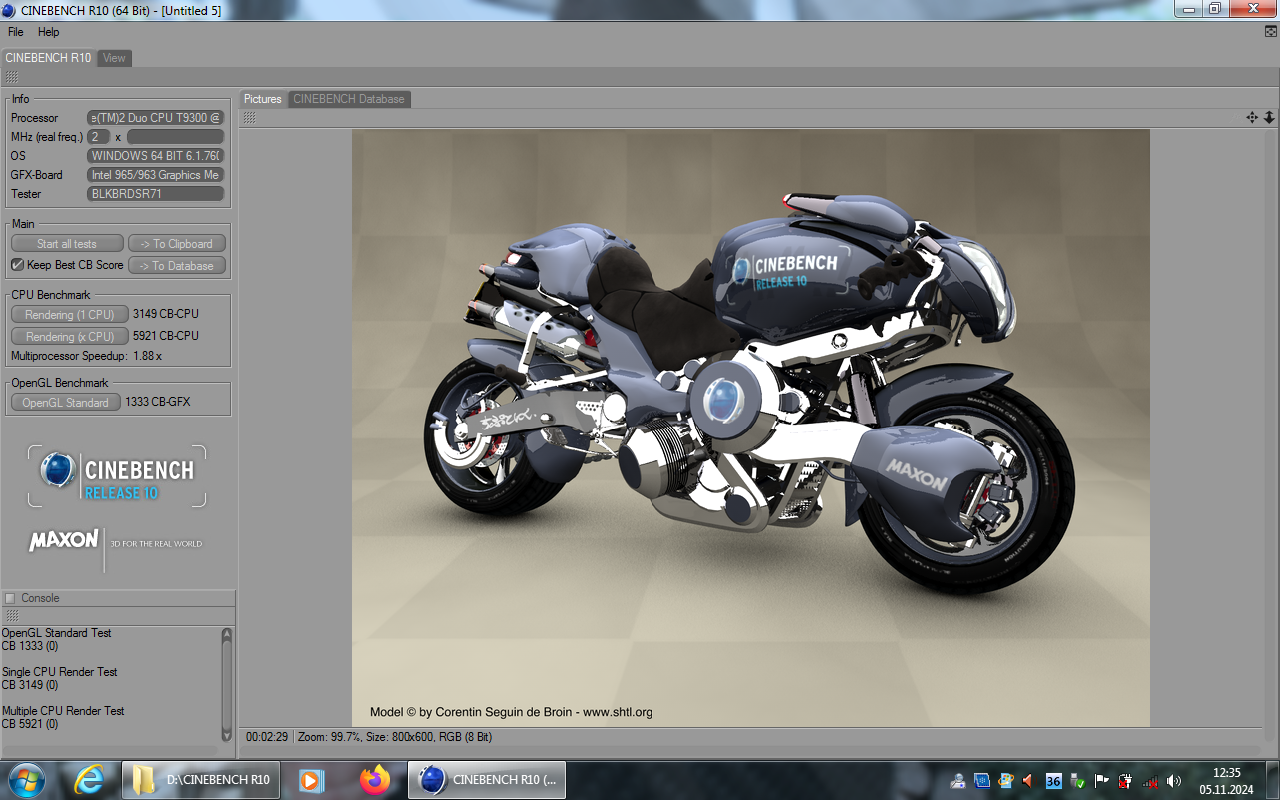 | Sje | 1033 | 5921 | 3149 | Intel(R) Core(TM)2 Duo CPU T9300 @ 2.50GHz | 2 Cores, 2 Threads @ 2,5 GHz | Intel 965/963 Graphics Media Accelerator | Link |