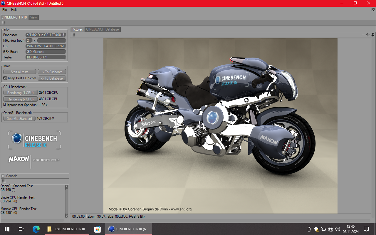 | Sje | 169 | 4891 | 2941 | Intel(R) Core(TM)2 Duo CPU T9400 @ 2.53GHz | 2 Cores, 2 Threads @ 2,53 GHz | Intel Graphics Media Accelerator 4500MHD | Link |