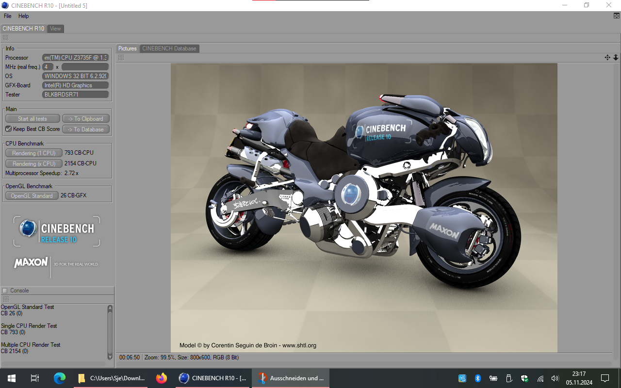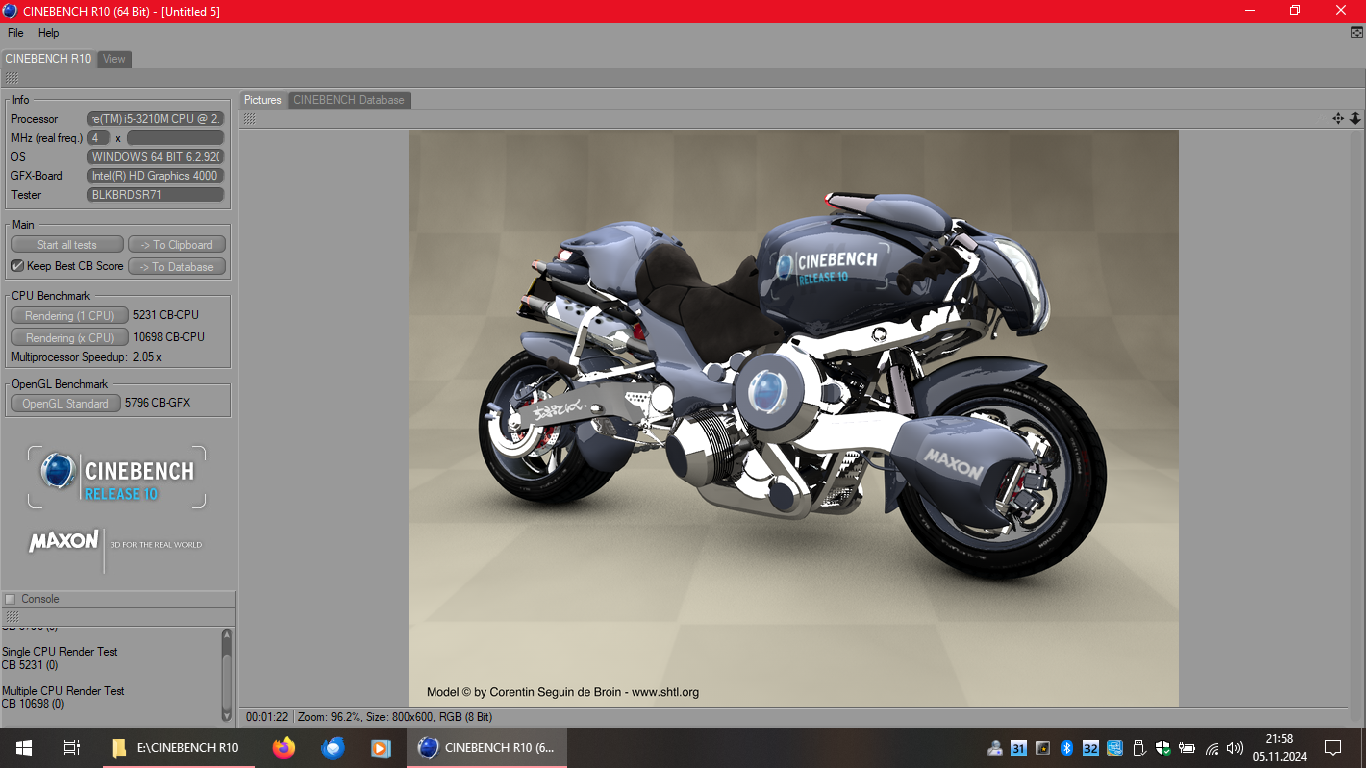 | Sje | 5796 | 10698 | 5231 | Intel(R) Core(TM) i5-3210M CPU @ 2.50GHz | 2 Cores, 4 Threads @ 2,5 GHz | Intel(R) HD Graphics 4000 | Link |