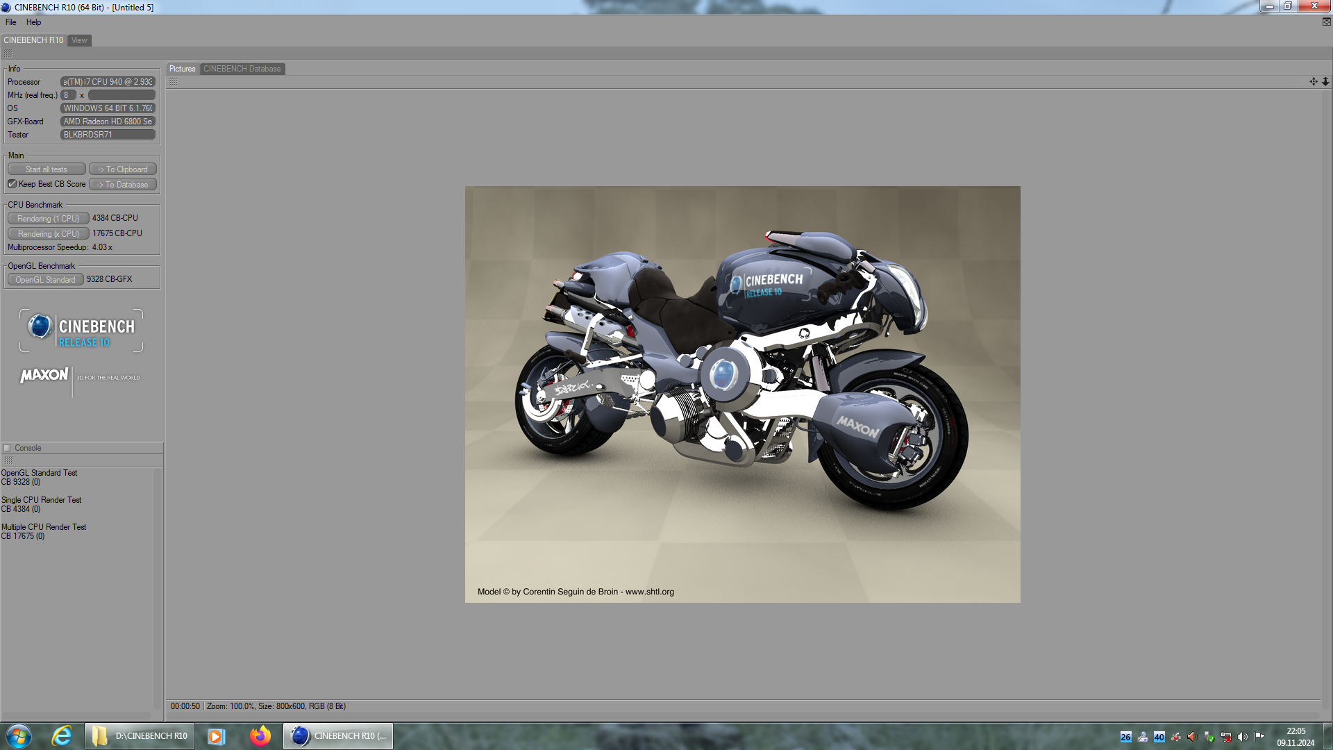 | Sje | 9328 | 17675 | 4384 | Intel(R) Core(TM) i7 CPU 940 @ 2.93GHz | 4 Cores, 8 Threads @ 2,93 GHz | AMD Radeon HD 6850 | Link |