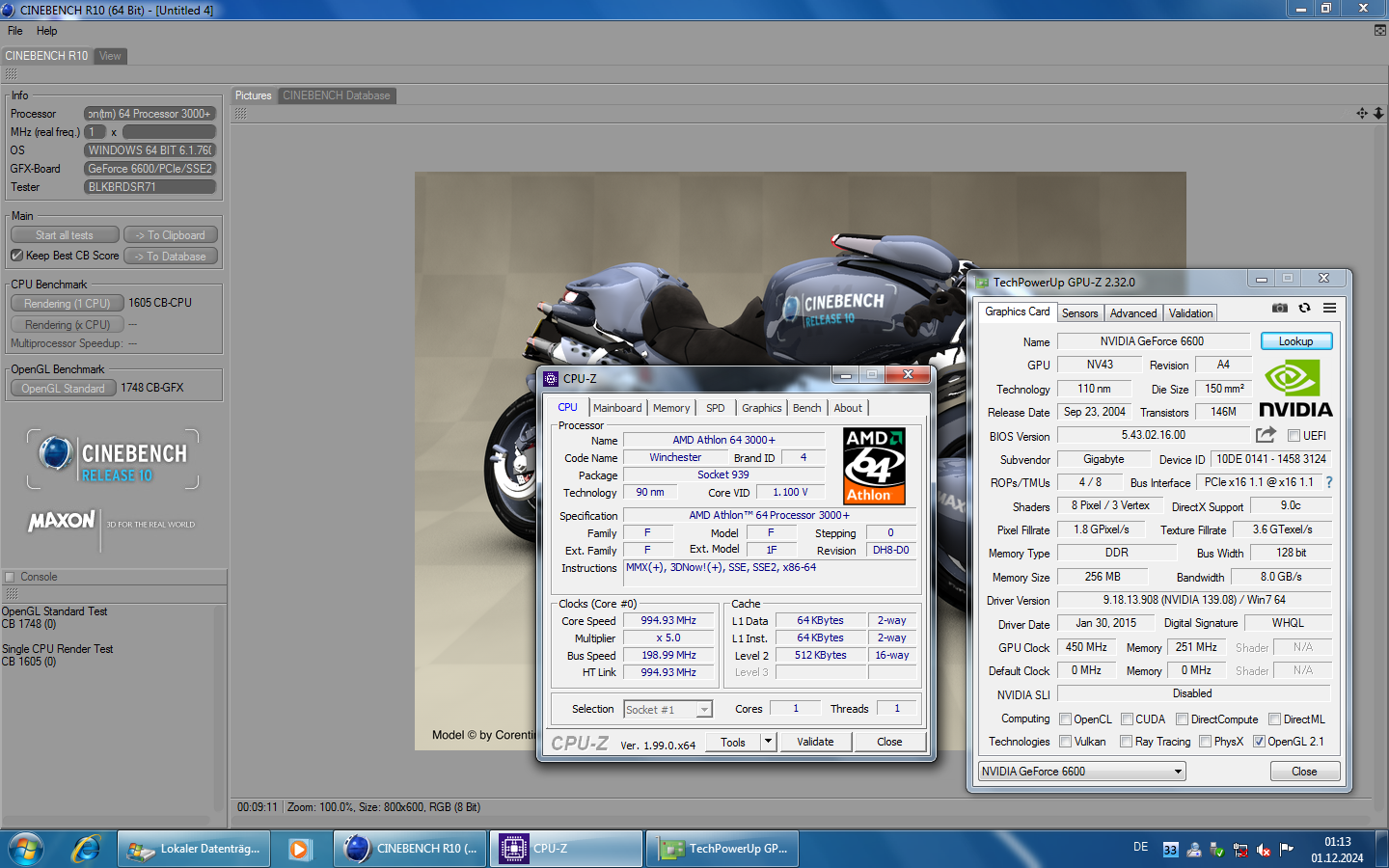 | Sje | 1748 | - | 1605 | AMD Athlon(tm) 64 3000+ | 1 Cores, 1 Threads @ 1,8 GHz | GeForce 6600/PCIe/SSE2 | Link |