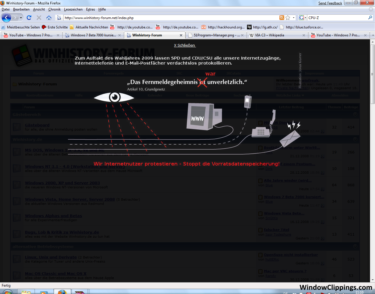 [url=http://www.vorratsdatenspeicherung.de/content/view/284/79/lang,de/]Stoppt die Vorratsdatenspeicherung! - Bundesgerichte kritisieren Vorratsdatenspeicherung - Aufruf zu Protest im Internet (29.12.2008)[/url]