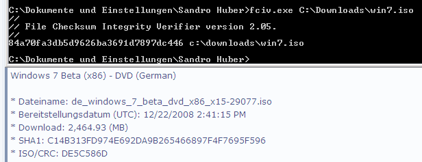 • Bei MS werden eigentlich CRC32 werte angegeben: