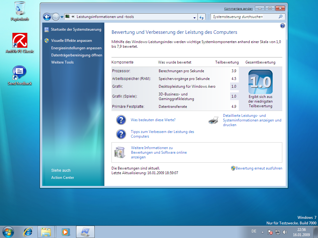 Naja da habe ich einen Leistungs index von 1,0 wegen Graka....