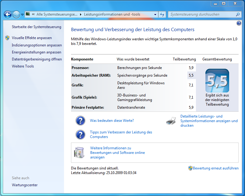 Bei mir hat sich von Vista nach 7 nichts geändert. Und ironischerweise ist die niedrigste Wertung nach wie vor Desktopleistung für Windows Aero mit 4,6, wobei die Grafikleistung für Spiele bei 5,7 ist. Versteh das einer...