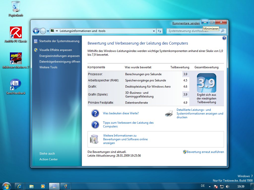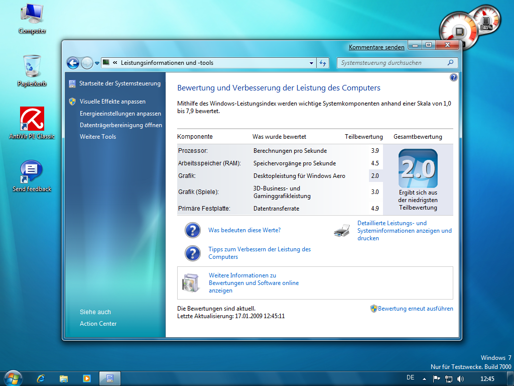 Grafik (Win): 6,1 (warschenlich wegen keinem DX10.1)