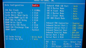 @oldie: falls du das CD-Rom am Secondary IDE angeschlossen hast, sieh mal im Bios nach, ob du beide IDE-Ports auf "Enabled" oder "Both" eingestellt hast. Zeigt das Bios überhaupt ein CD-Rom bei der Zusammenfassung im Balken an? (gegebenenfalls auf Pause drücken um diesen besser ablesen zu können) @igor: ich kenn auch keines, das CD's booten könnte, können viele P1 auch noch nicht.. Dirk: mit L1 + L2 im Write Back Mode ist immer schneller, speziell im Betrieb mit einer Voodoo merkt man das deutlich..