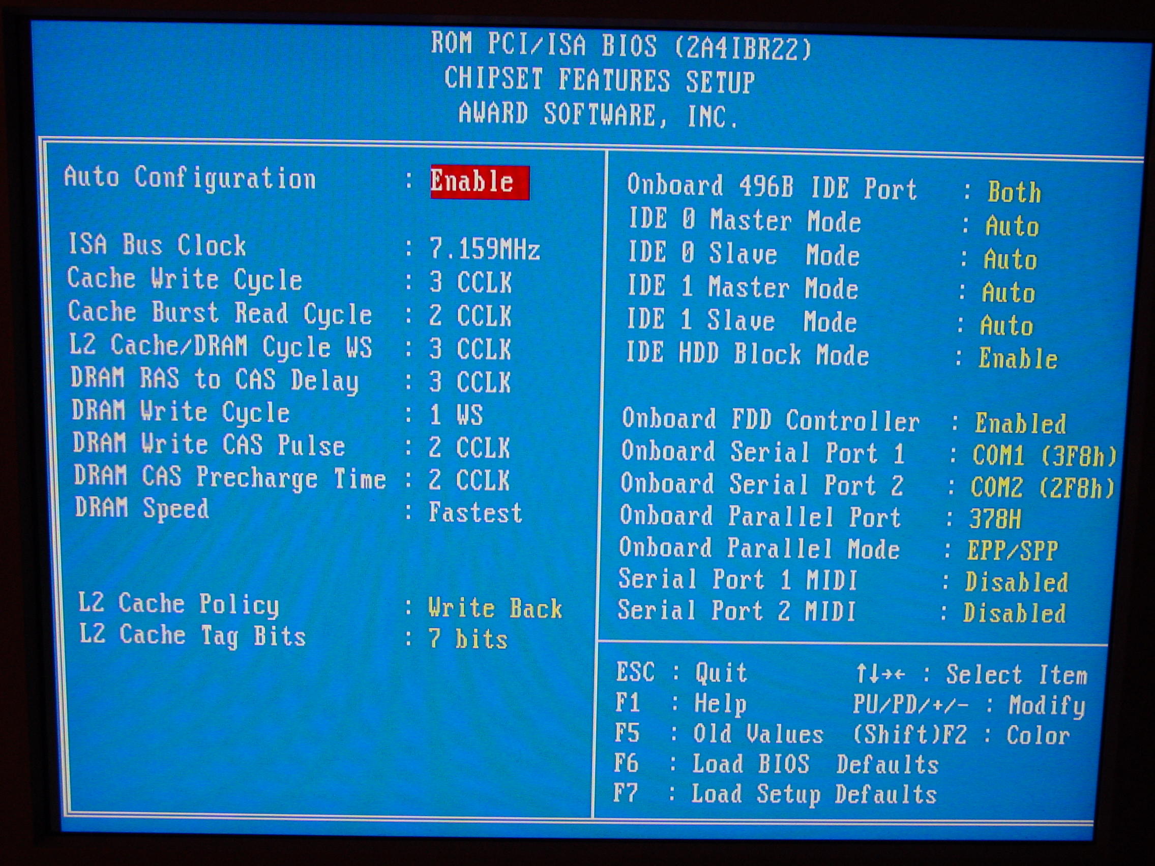 Wenn ich mich recht erinner, war die Cache Einstellung "Write Back" immer die beste. (also so lassen, wie jetzt) Nur mit den Bits bin ich mir nicht sicher. Auf jeden Fall habe ich bei meinem 486er (DX2 mit 66MHz) mit Write Back bessere Ergebnisse erzielt.