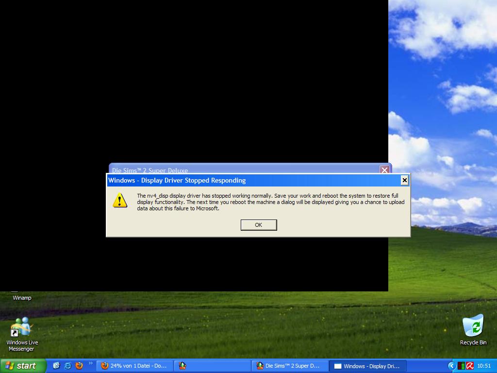 mit dem neusten nv treiber hab ich genau die selbe scheiße.. nur das ich nich so ne schöne meldung bekomm sondern das das spiel (GTA IV) einfriert, sich mein monitor innen standby verabschiedet und mir nix anderes übrigbleibt als 'n hard reset..
