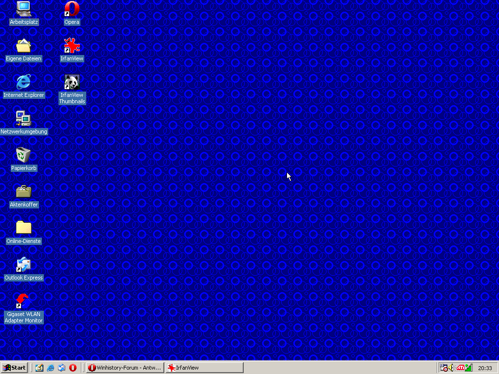 Hier mal der Desktop von meinem Intel Celeron 633 MHz - Rechner mit Windows 98 SE.