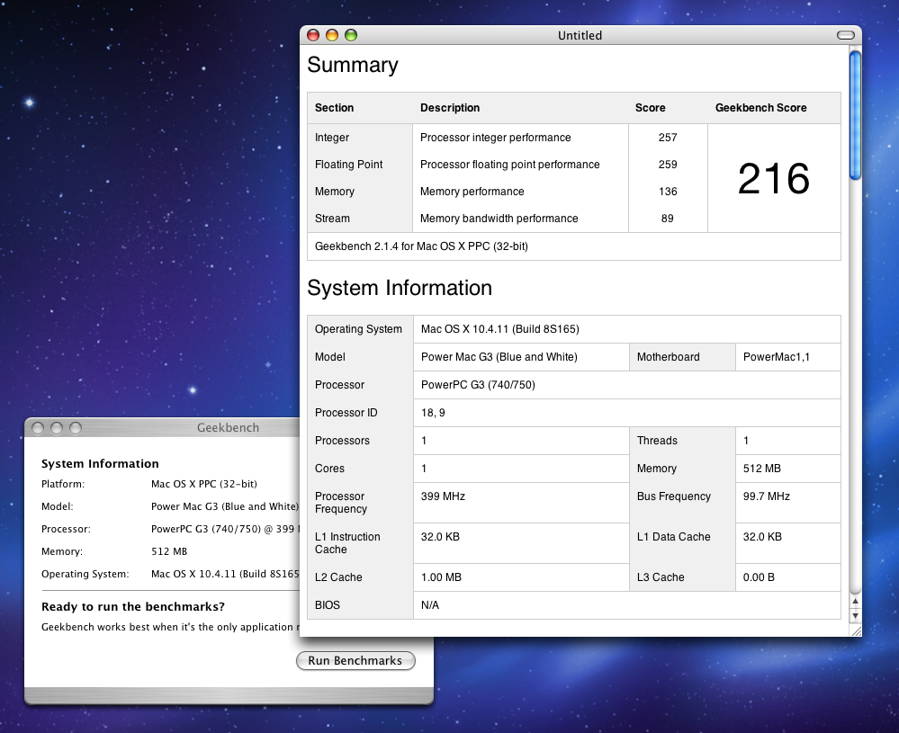 Geekbench 2.0.18 for Mac OS X x86 (32-bit)3630 punkte