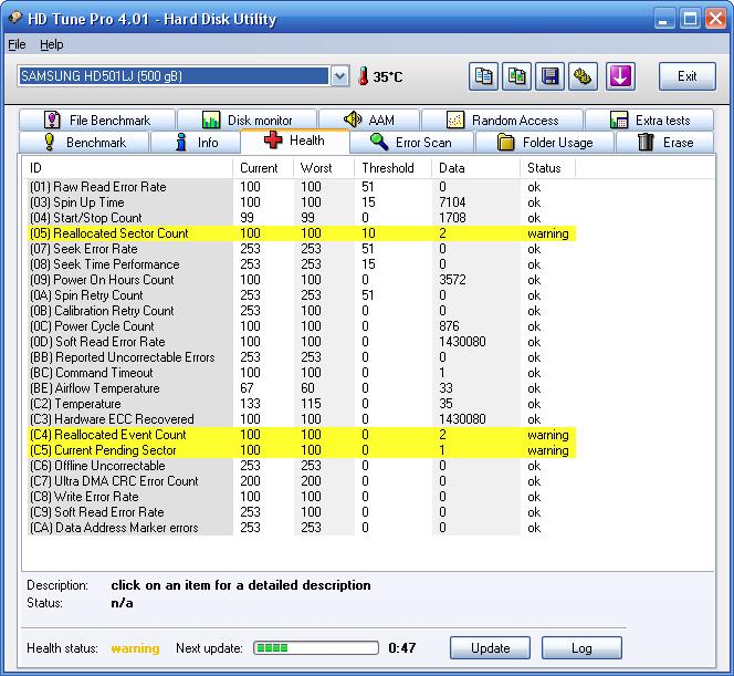 hatte nen c6, und das ganze wurde auf kulanz getauscht. verstanden hatte ich das aber nicht, meiner meinung wars pure gewährleistung. hatte aber den fehler gemacht und nen low level format durchgeführt. dadurch haben die ladenpraktikanten keinen defekten sektor mehr gefunden (der eine war ja deaktiviert, 2 umgelenkt)