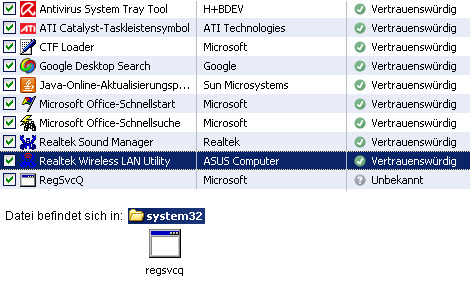 Hab diese komische Datei hier in TuneUp 2008 gefunden. Sie ist im Autostart. Wenn ich sie dort lösche, kommt sie gleich wieder in den Autostart. In system32 zu löschen funzt nich ![]()