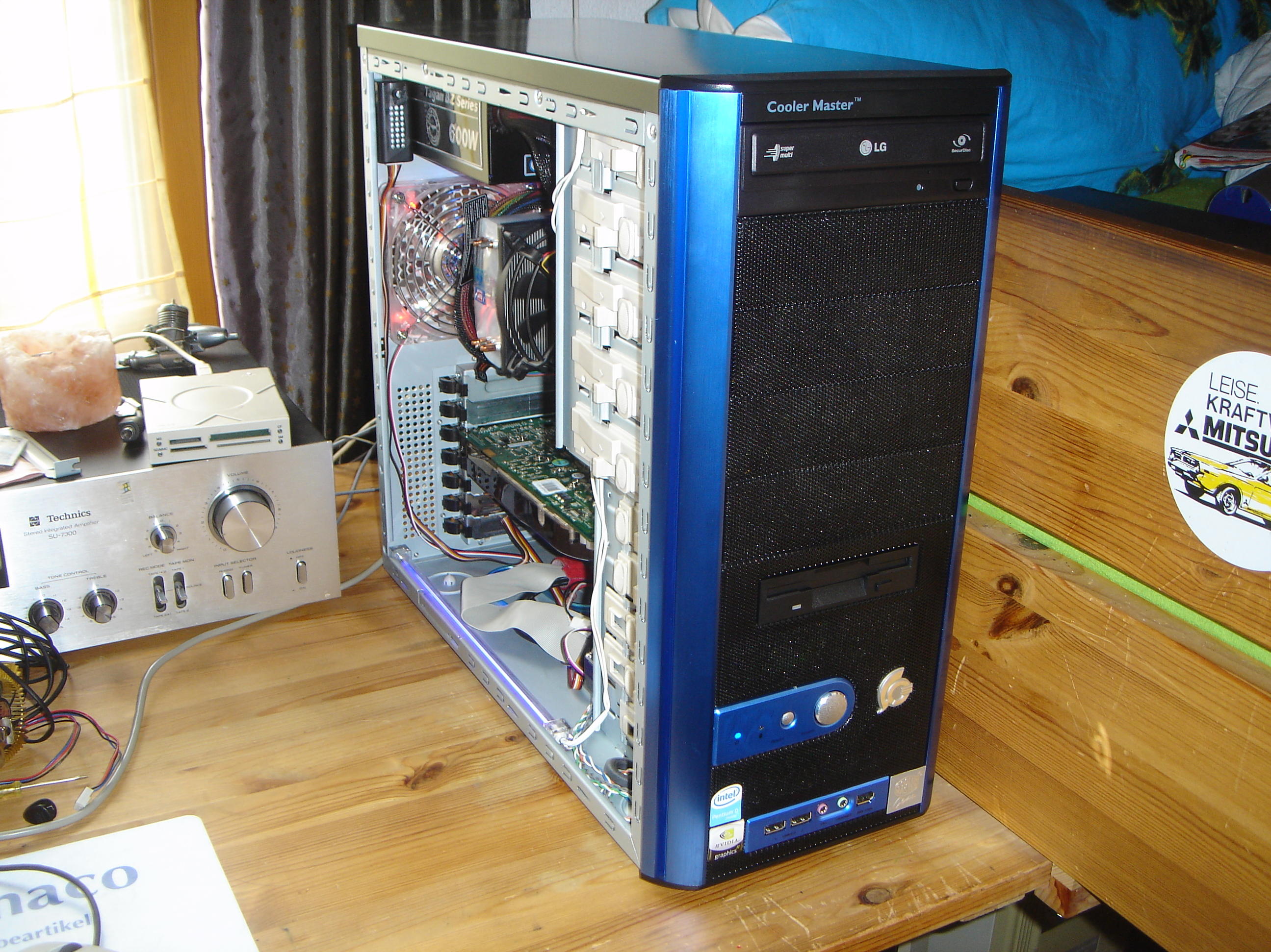 Also die momentan verbauene is ne BFG (special OC) 8800GTS 320 MB Ram von meinem Pa, die Untere (die Blaue) is meine 8800GT 256 MB Ram von ASUS, da aber mein Board die GT ned unterstützt, hat mein Pa vorgeaschlagen, das ich bis ich die Kohle fürn neues Mobo hab seine GTS nutzen darf und er meine GT