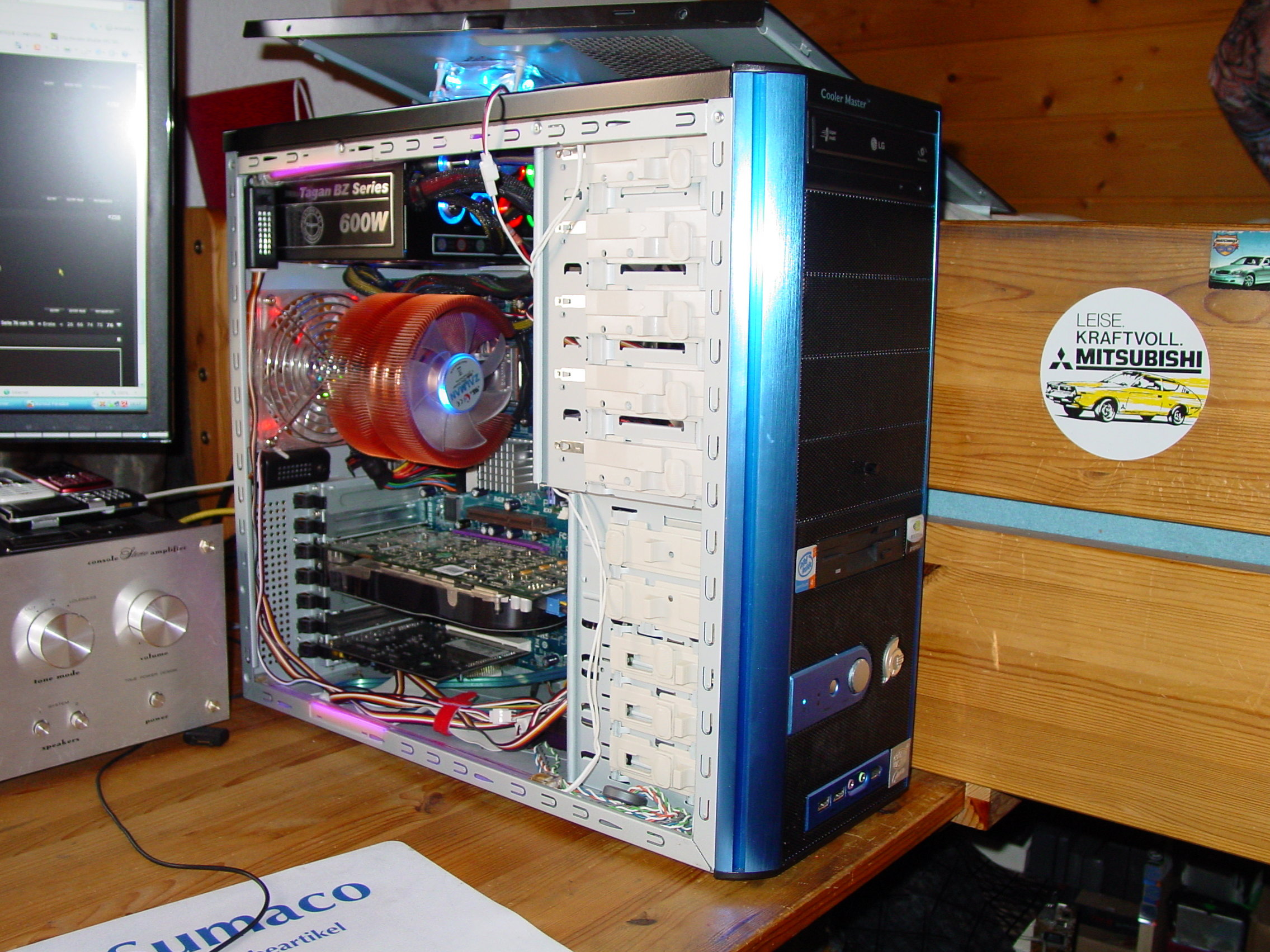 CPU Cooler ist ein Sockel A Kühlkörper mit ner anderen Halterklemme und men 80er Lüfter draufrennt wie sau