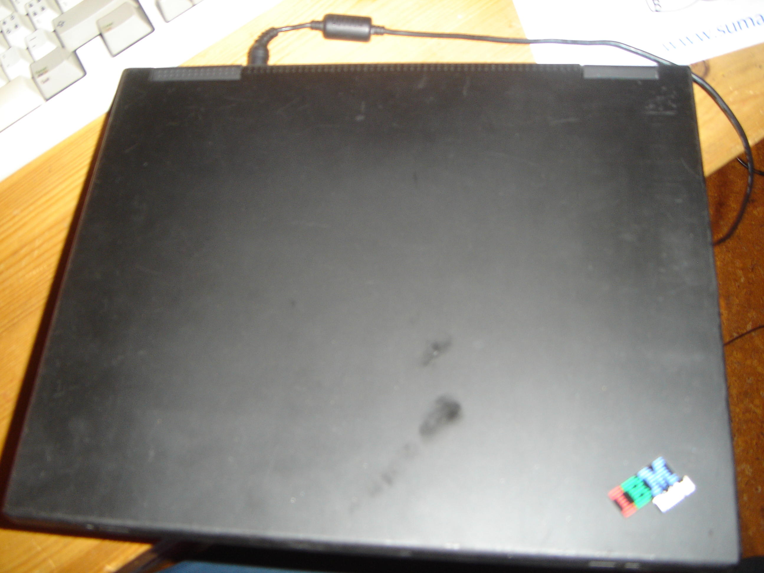 Leute, das Teil hat etliche kleine weisse Pünktchen im Display, hat n Riss bei den Pc card Einschüben, vorne beim P3 Sticker n ca 3 Cm lange Riss, das Gehäuse und die Tastatur sind sstellenweise blank, die Festplatte "knallt" manchma kurz und schaltet 3 Sekunden später wieder ein und rappelt wie der Lumpensammler, und der Deckel des Laps is so zerkratzt, man könnte meinen ne Katze hat bremstests drauf gemacht, uasserdem mussten wir schon so n kleines rundens schwarzes Dingens aufs Motherboard anlöten (das war einfach weggefallen) und einen Distanzhalter wieder ankleben ausserdem is der Akku tot
