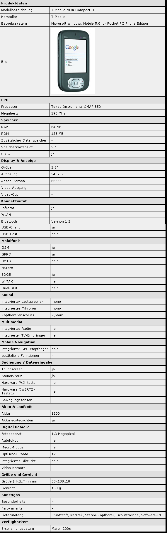 Der Lieferumfang des Gerätes ist so wie vom Hersteller, komplett mit allen Heftchen und der Windows Mobile CD