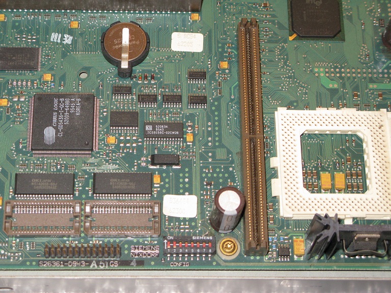 - Grafikchip onboard ist diesmal auch kein Tseng Labs sondern einer von Cirrus Logic - wieder mit 2 Chips gelötet und 2 freien Plätzen zum erweitern.