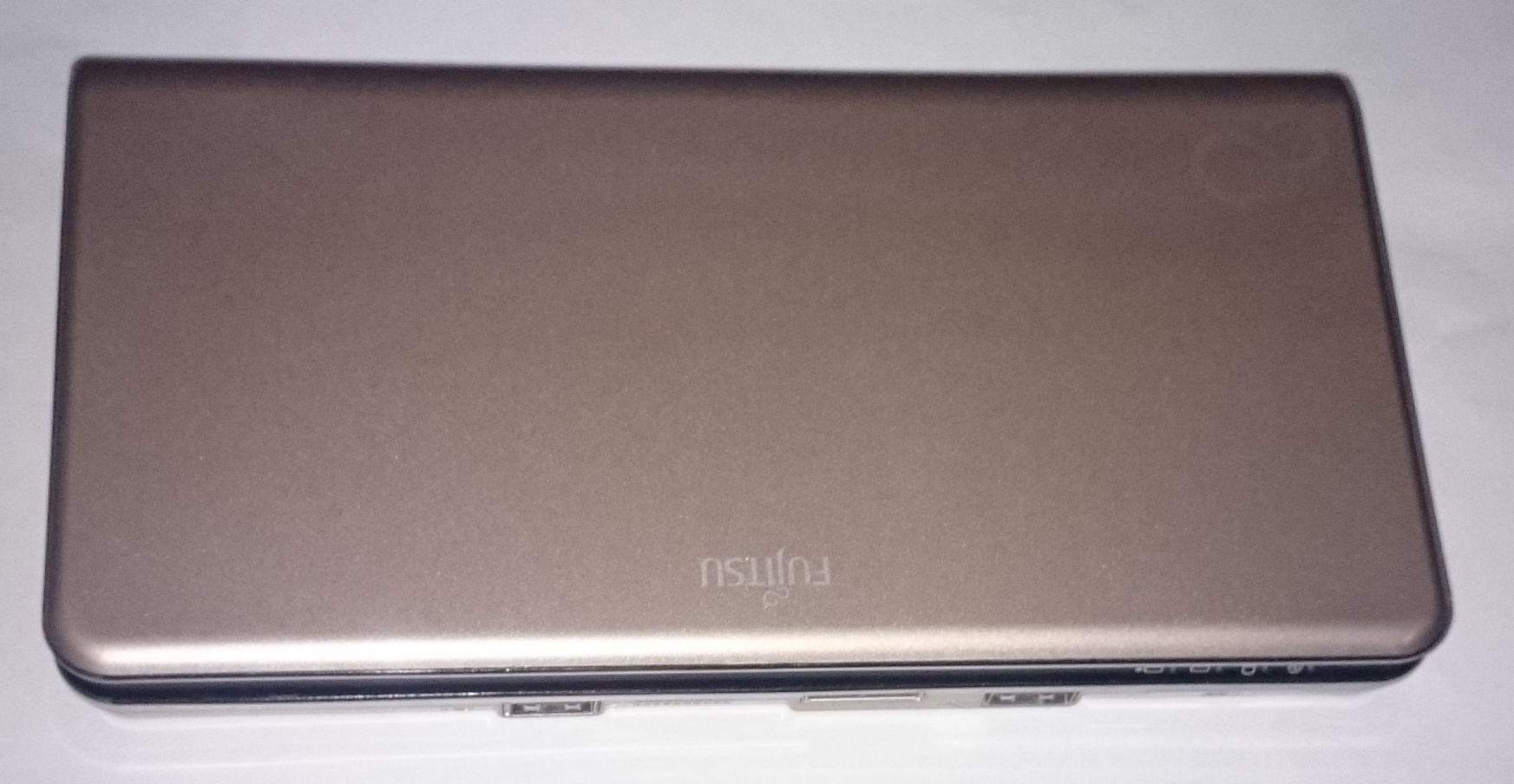 Biete ein Fujitsu LifeBook UH900 von 2010. Dabei handelt es sich um ein Netbook von der ungefähren Größe einer VHS-Kassette (nahezu identisch in Dicke und Tiefe; etwa 1 cm breiter). Gewicht: etwa 520 Gramm mit Akku. Die Farbe ist "champagner" bzw. gold. Nur in den USA erhältlich gewesen.